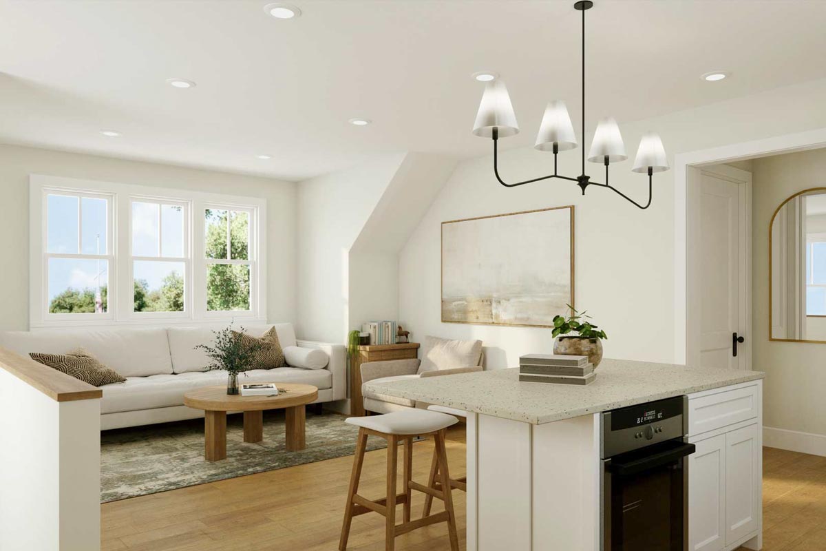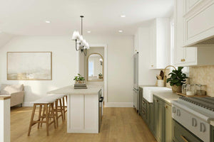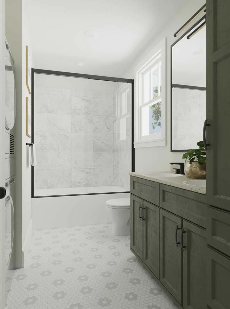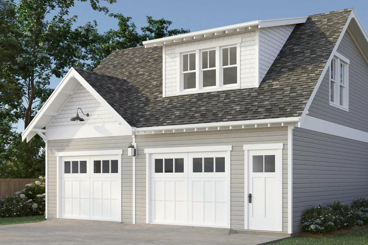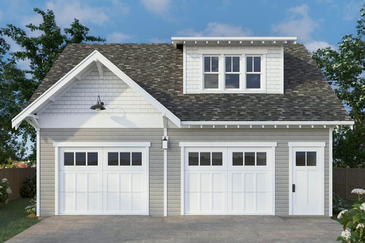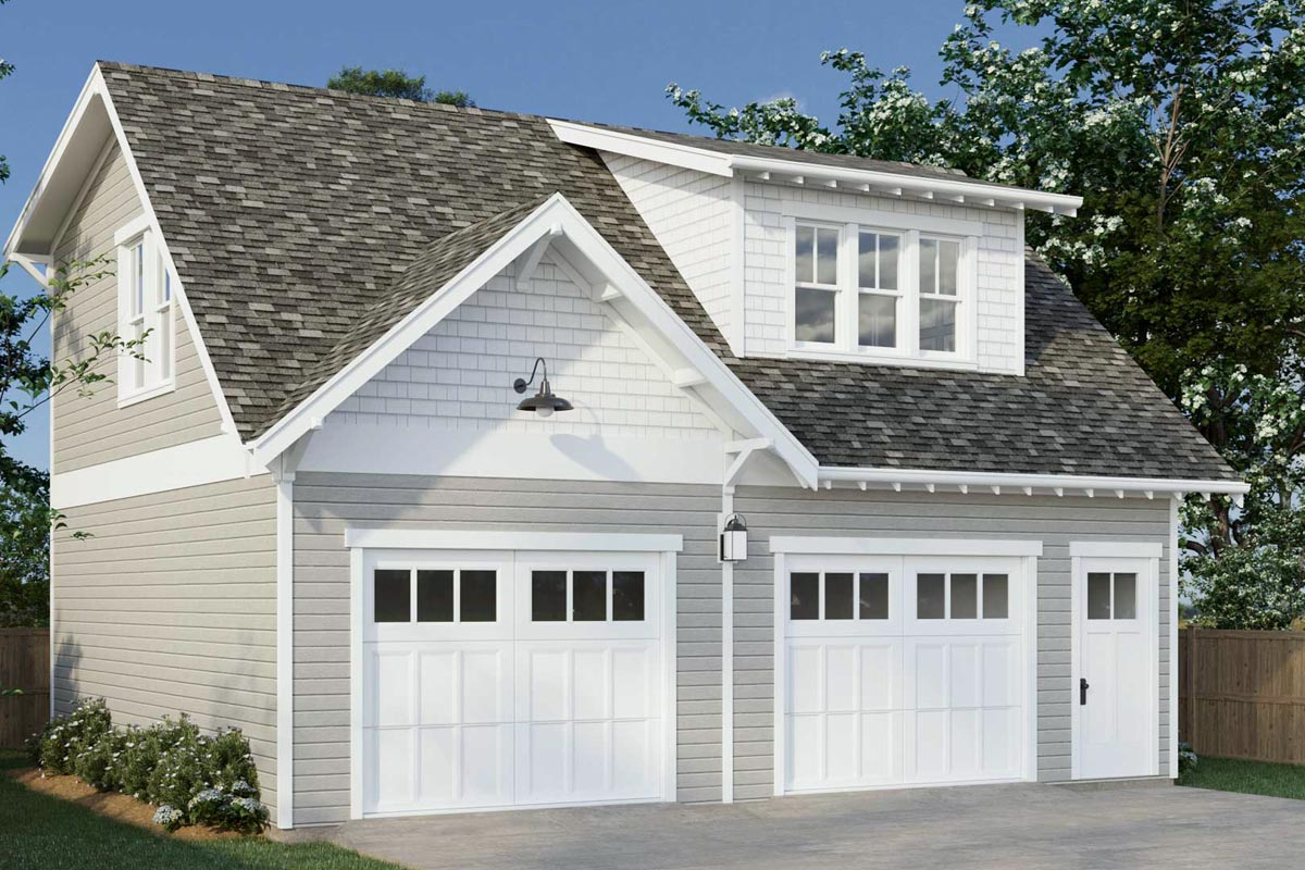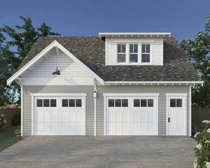 With a generous 30' width and 26' depth, this garage apartment fits comfortably on a variety of lots and works perfectly as an accessory dwelling unit (ADU). The 9' garage ceiling adds versatility for storage or workshop use, while the 8' second-floor ceilings provide a bright, airy feel upstairs. Whether used as a guest house, studio, or independent living space, this plan offers convenience and flexibility in a compact, contemporary design.