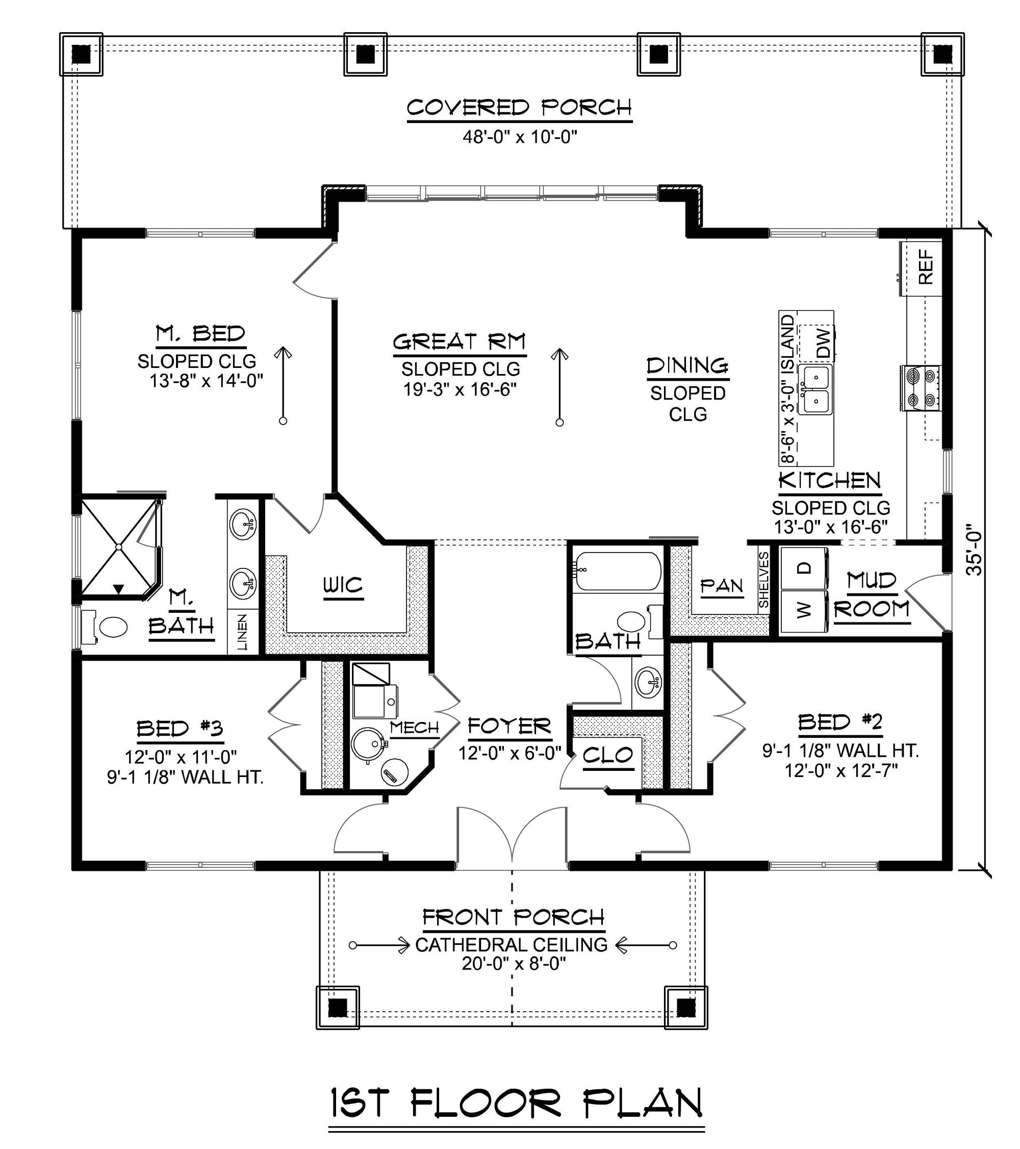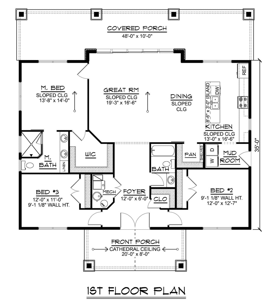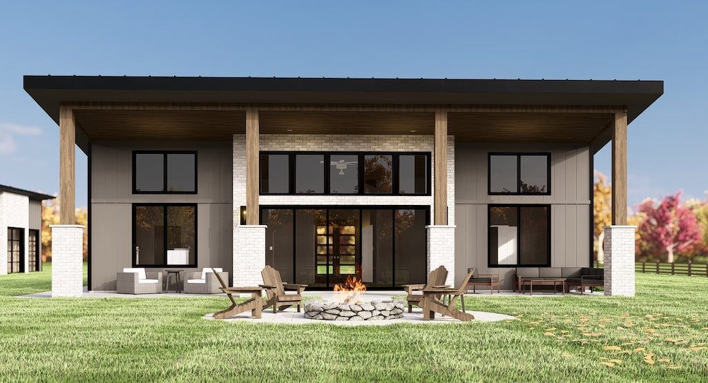This contemporary house plan offers a stylish and efficient design with 1,720 square feet of heated living space, 3 bedrooms, and 2 full baths, making it perfect for modern families or those seeking a functional and elegant layout.