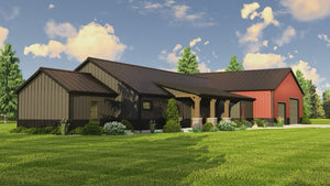 Five printed sets of working drawings shipped to you, plus a digital version in PDF format. This option comes with a license to build ONE home and includes a copyright release for printing unlimited sets of plans and making modifications.