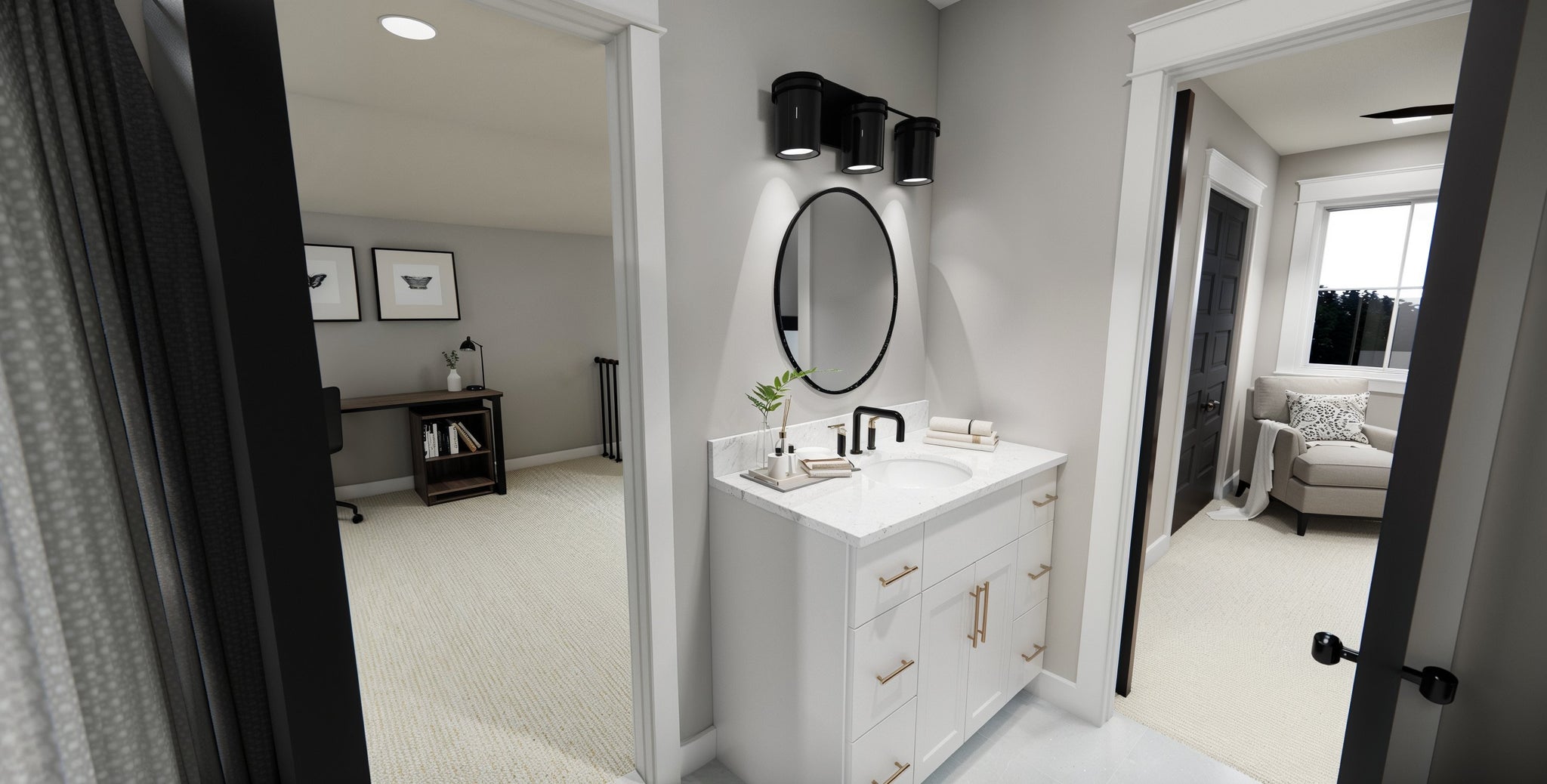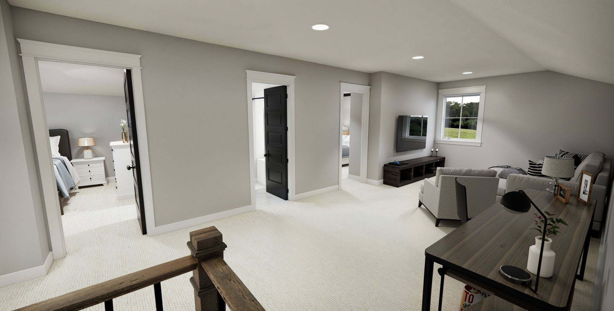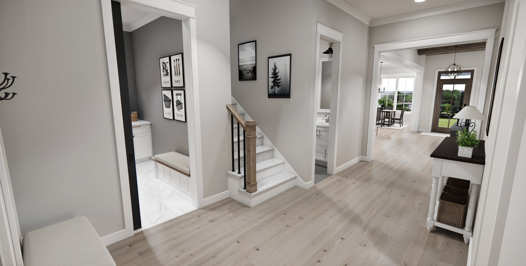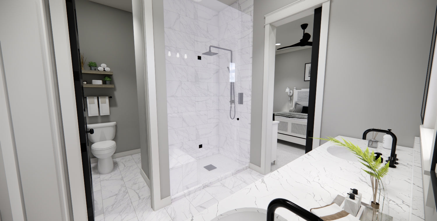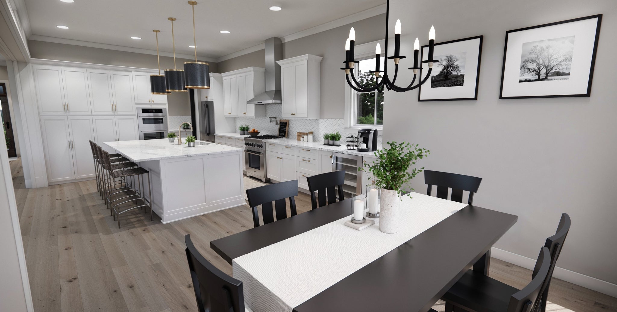 This inviting 3-bedroom, 3.5-bathroom farmhouse combines modern comfort with timeless charm across 2,454 square feet of living space. The spacious main level features an open floor plan where the great room welcomes you with a cozy fireplace and large windows, creating a bright and welcoming ambiance. The adjoining kitchen is designed for both cooking and entertaining, with a central island that seats four, plenty of cabinetry, and a walk-in pantry tucked behind a pocket door for easy access.