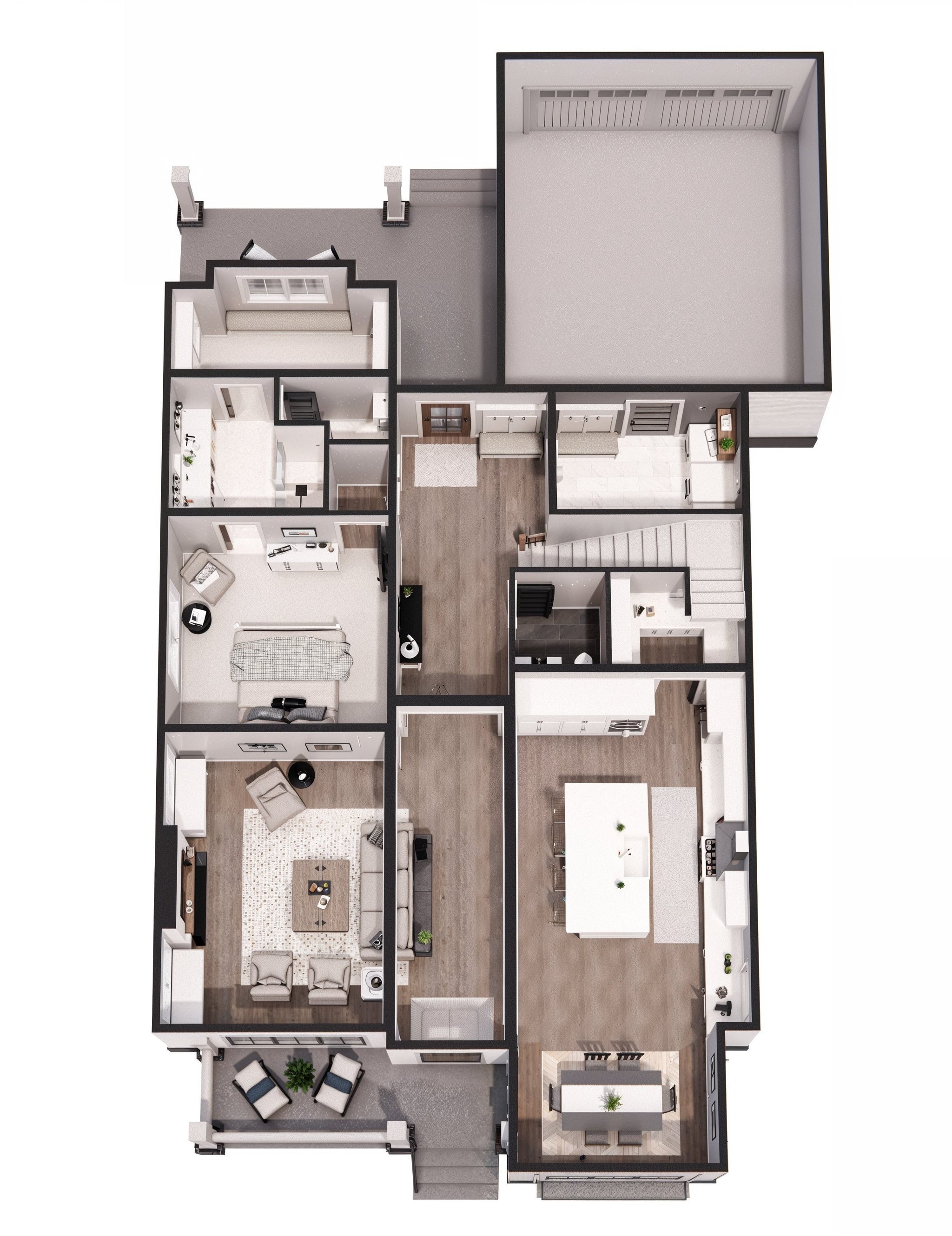 Walkout Basement - This foundation is typically suited for rear-sloping lots and provides storage or living areas. Walkout basements have doors that provide access to the outside.