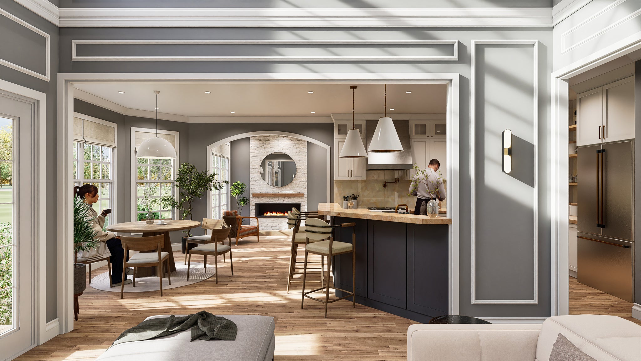 This exquisite house plan boasts a generous total living area of 3,054 square feet, thoughtfully designed across three levels, including a spacious basement. The first floor features 1,567 square feet, incorporating five bedrooms and four bathrooms, providing ample space for family and guests. Highlights include a two-story grand room that greets you with a stunning foyer, a formal dining room, and a cozy breakfast area. The open-concept layout flows seamlessly into a well-appointed kitchen with an island and walk-in pantry, perfect for entertaining. A convenient first-floor laundry, home office, and master sitting area enhance functionality, while the covered back porch and outdoor fireplace offer ideal spaces for relaxation and outdoor gatherings.