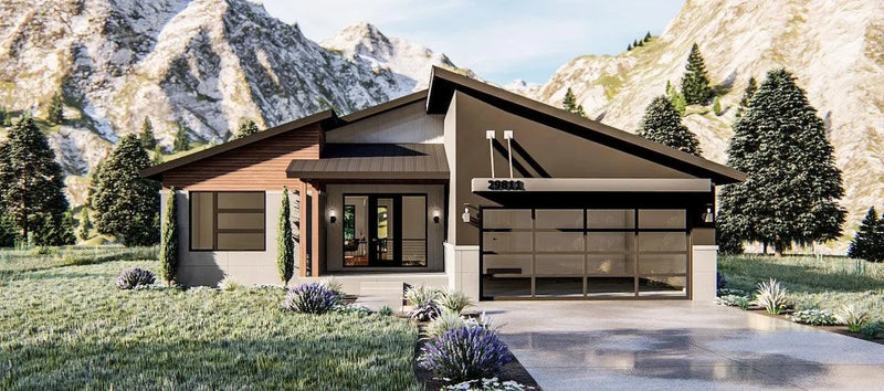 The first-floor master suite offers privacy and luxury, complete with his and hers closets and a convenient first-floor laundry room just nearby. Two additional bedrooms are located in a split-bedroom layout, offering privacy and space. The home also includes a mudroom, perfect for organizing and storing outdoor gear. The 545 sq. ft. two-car garage with a front load provides ample parking and storage space. Built on a basement foundation with 2x4 wall framing, this home boasts durability and practicality. With a 4:12 roof pitch and a ceiling height of 9 feet on both the first floor and basement, this design offers an ideal blend of comfort, style, and functionality.