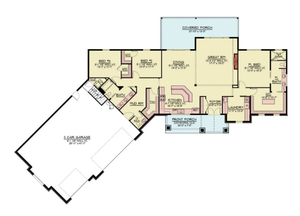 • This Mountain Ranch home plan would compliment any setting and delivers 3 bedrooms, 2.5 baths, and a versatile loft (813 sq ft) above the angled 3-car garage.