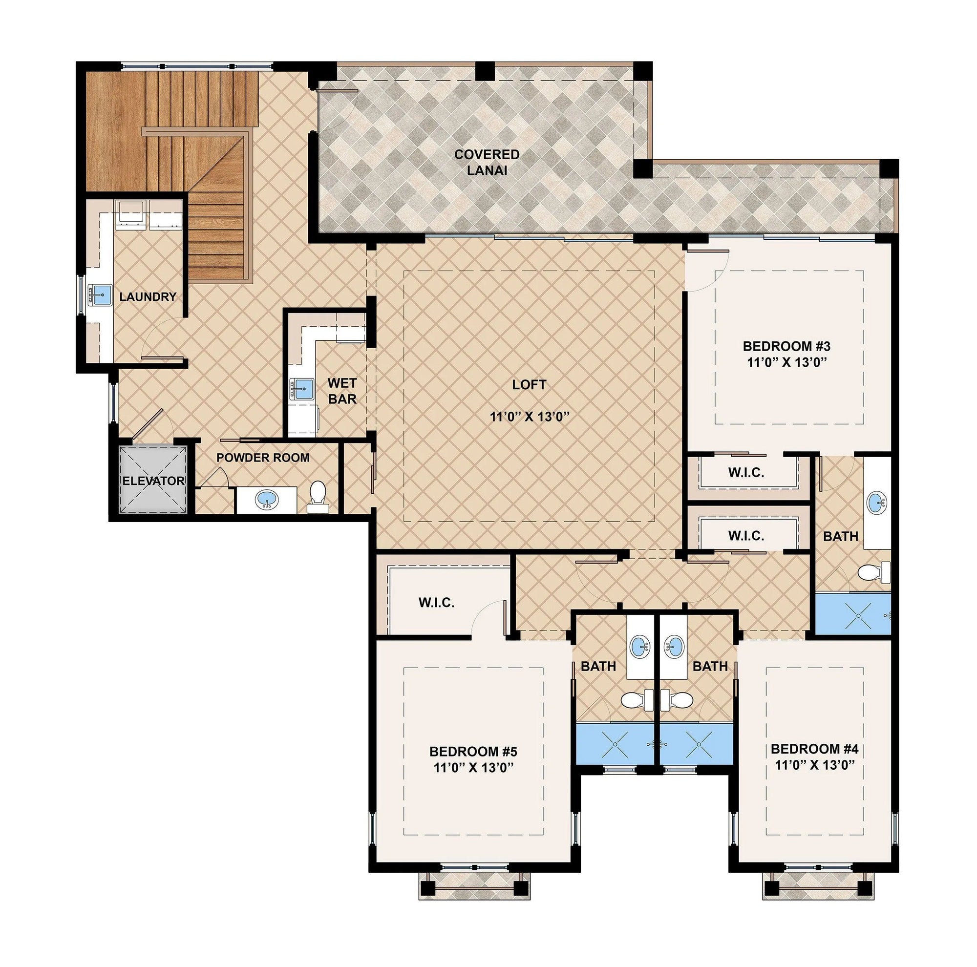 The second floor adds another 2,115 square feet of living space, including a loft area perfect for relaxation or play. Five well-appointed bedrooms ensure ample space for family and guests, while six bathrooms and an additional half bath accommodate everyone's needs. The outdoor living spaces are equally impressive, featuring a covered front porch, a rear porch with an outdoor kitchen, and a lanai that extends the living area into nature. Additional highlights include an elevator for easy access, multiple laundry facilities on both floors, and a wet bar for entertaining. With a three-car garage and thoughtful design elements throughout, this home is truly a haven of luxury and comfort.
