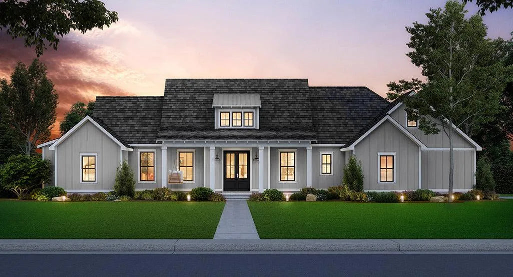 A neatly designed farmhouse home, the Bear Creek house plan is a refined country inspired one-story home with 1954 sq. ft. of total living space. With three bedrooms, two bathrooms and one half bathroom plus two-car side load garage, Bear Creek is the perfect retreat for empty-nesters packed with desirable features.
