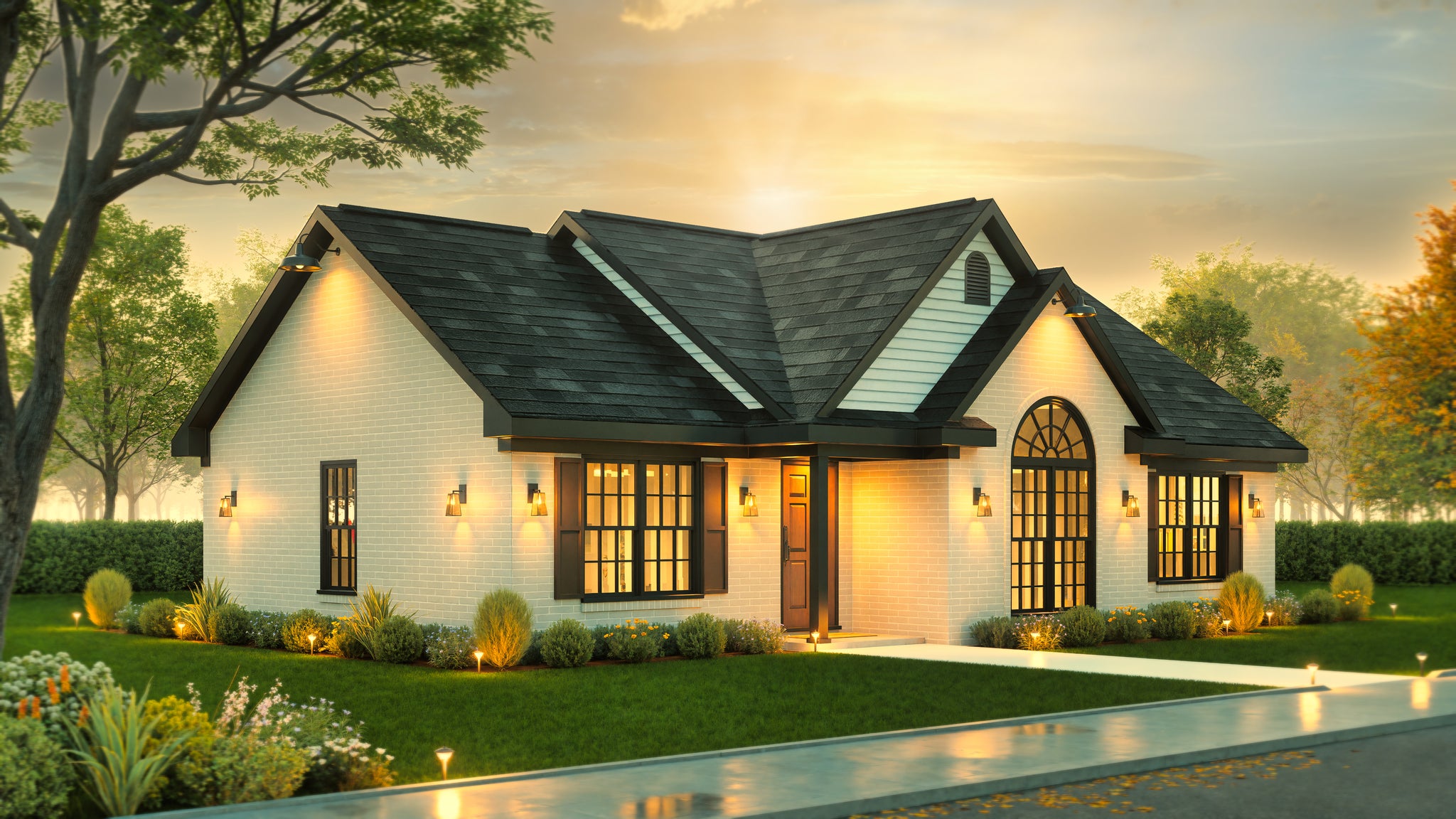 With a classic brick veneer exterior and a charming 24 sq ft front porch, the home radiates timeless curb appeal. A 25 sq ft rear stoop extends the living space outdoors for morning coffee or evening unwinding. Built with durable 2x4 framing and an 8:12 pitched shingle roof, this low-maintenance, garage-free home is ideal for smaller lots or those looking to simplify without sacrificing style or livability.