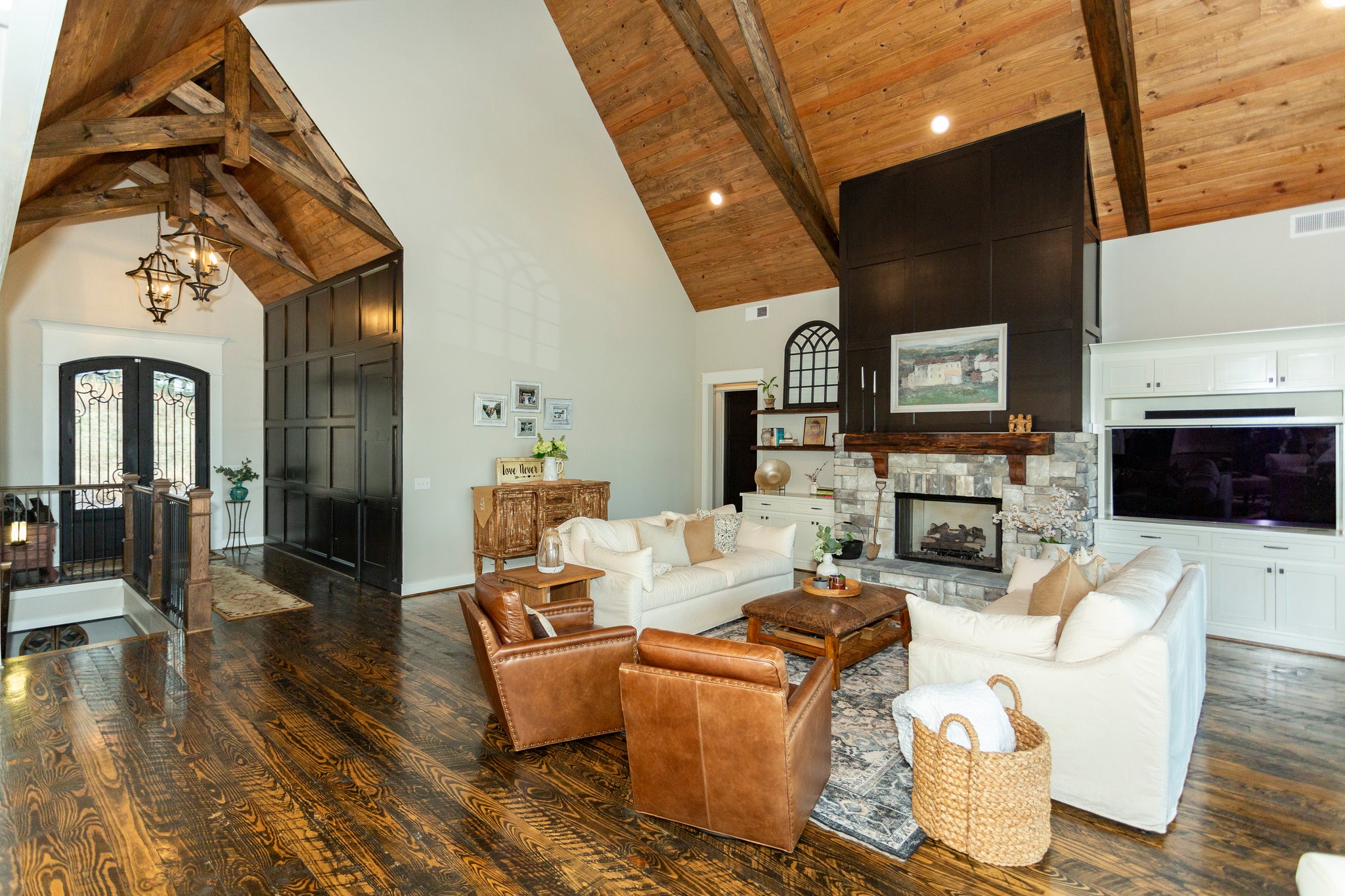 Designed for comfort and relaxation, this home boasts multiple porches, including a covered front and back porch and a screened porch/sunroom. The bonus room, game room, and media room provide versatile spaces for work or play. With 11' first-floor ceilings, a 104'8" width, and a 30'1" building height, this home feels grand yet inviting. The two-car front-load garage and extensive storage space add convenience, making this an ideal home for those seeking both elegance and practicality.