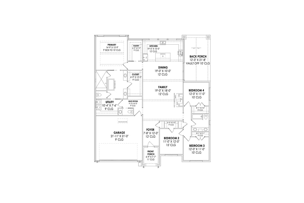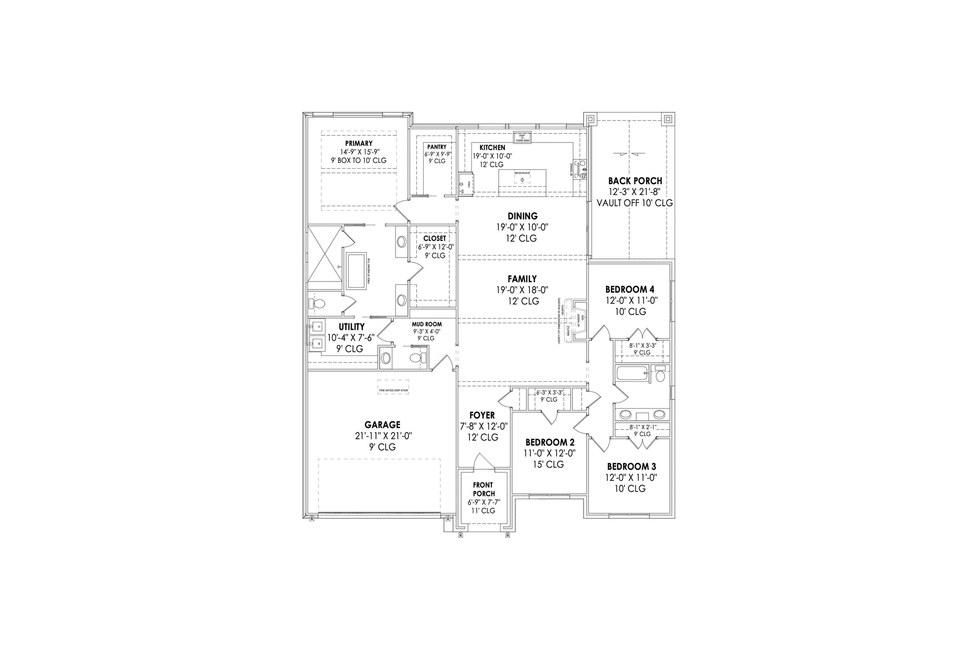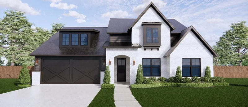 Outdoor living is enhanced by a welcoming front porch and a spacious rear porch, perfect for relaxation and entertaining. The split-bedroom design promotes privacy for family members, while the side-loading garage offers practicality without compromising curb appeal. With a building height of 31' and elegant architectural details, this residence balances style and modern convenience, making it an ideal choice for contemporary families.