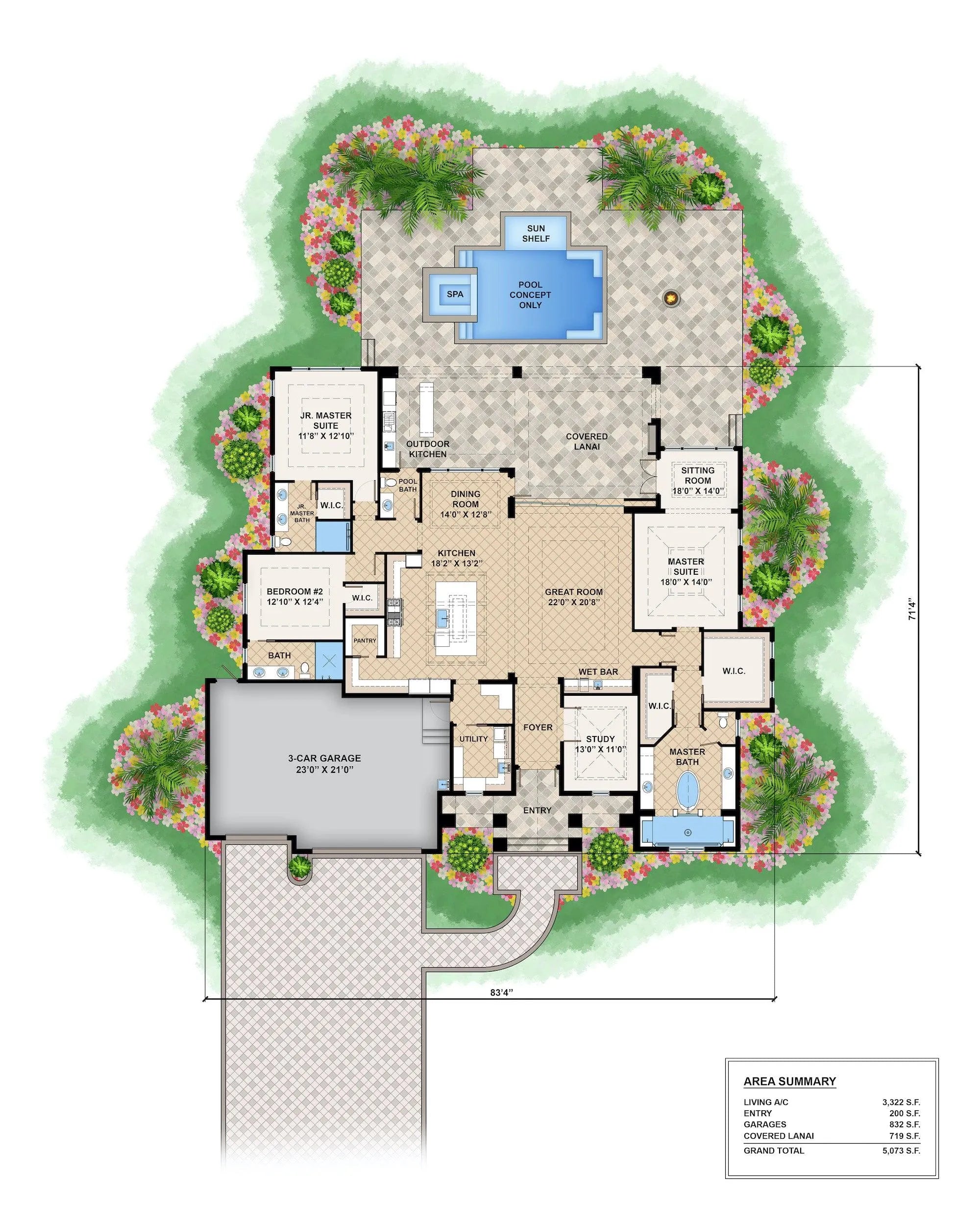 Entertain guests effortlessly with the addition of a covered back porch and outdoor kitchen, perfect for gatherings. A home office/study and a mudroom add functionality, while the split bedroom design ensures privacy. With three bedrooms, three full bathrooms, and one half bath, this home is both stylish and practical, ideal for families seeking comfort and elegance. The front-loading three-car garage enhances the home’s curb appeal while providing ample storage space.