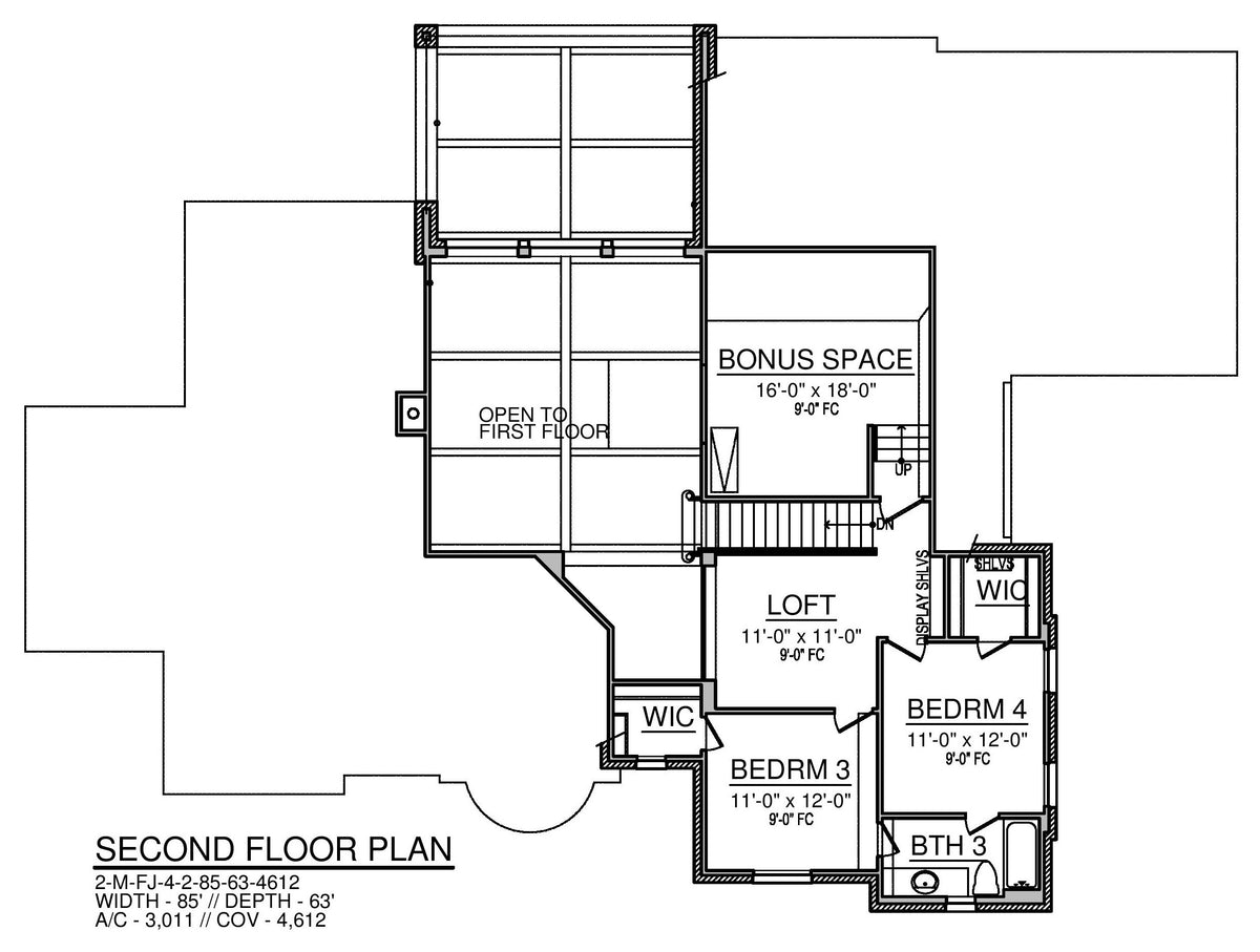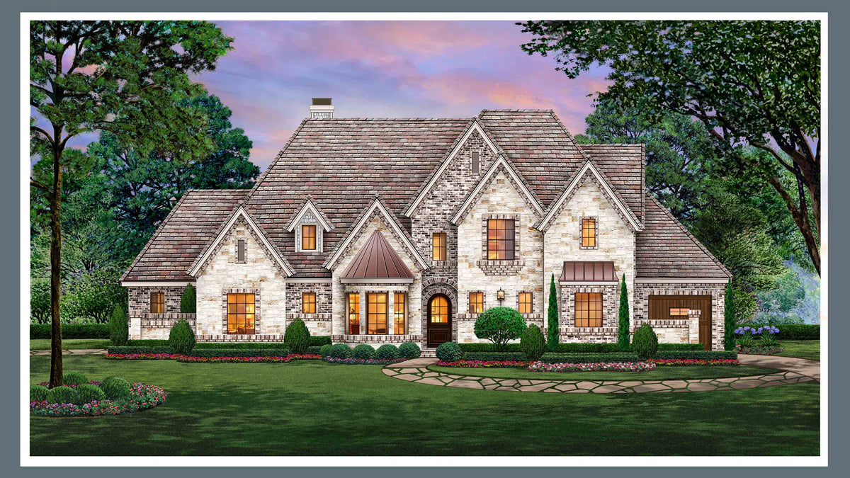The side-load 3-car garage (1,017 sq. ft.) provides plenty of space for vehicles and storage. Designed with 12:12 and 16:12 roof pitches, 11-foot first-floor ceilings, and 9-foot second-floor ceilings, this home feels spacious and grand.