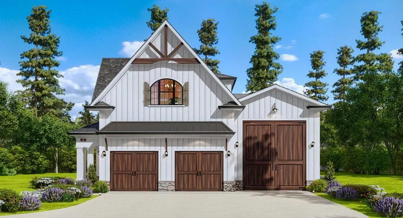 This thoughtfully designed house plan offers a total living area of 651 sq. ft., combining elegance and practicality in a compact space. The first floor, measuring 1,326 sq. ft., features an open floor plan that promotes a seamless flow between the living, dining, and kitchen areas. With vaulted volume ceilings soaring to 16 feet, this level exudes an airy and spacious ambiance. A covered front porch adds to the home’s curb appeal while providing a welcoming entrance.