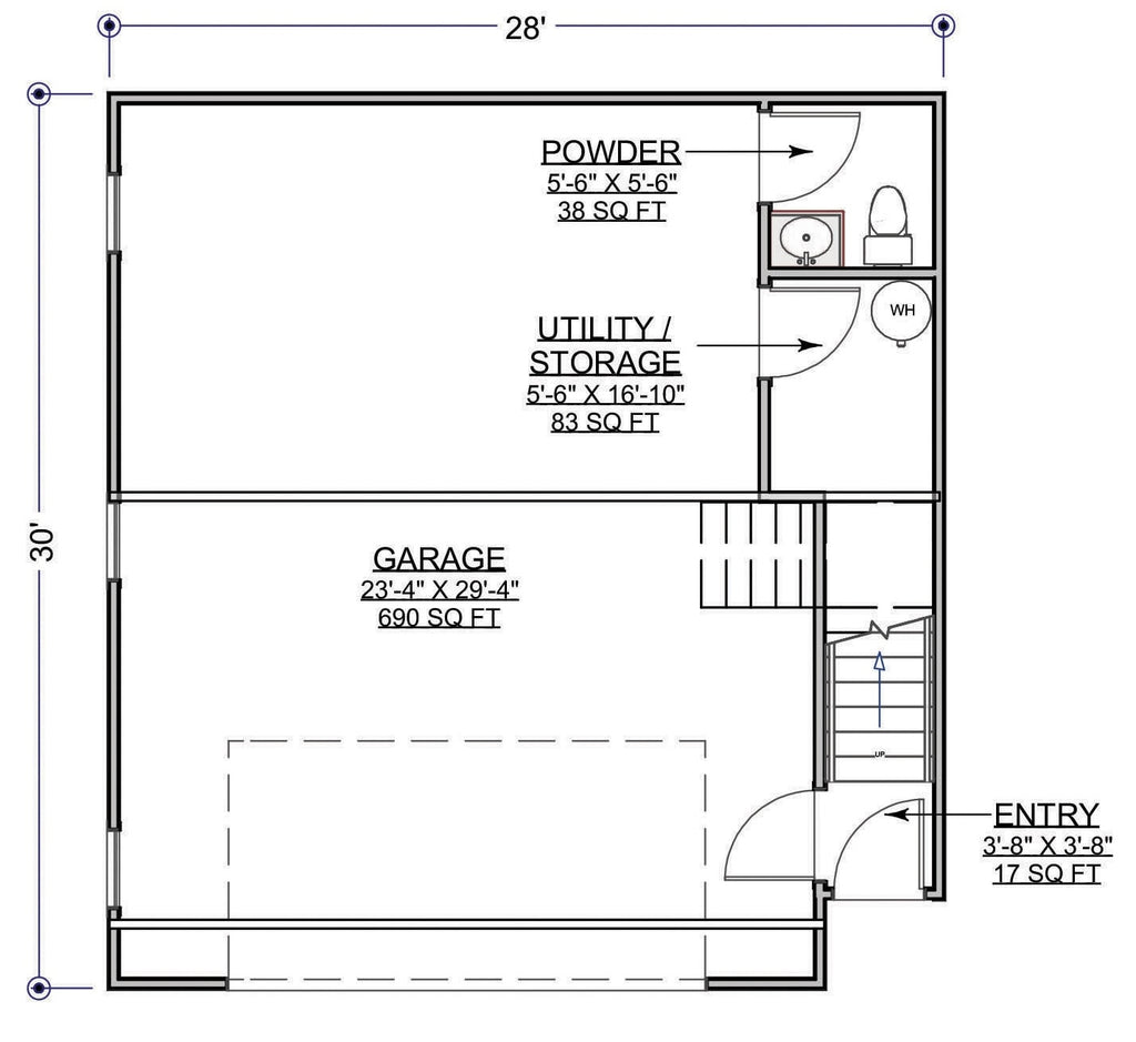 The ground level includes a 2-car front-load garage with room for a workshop or additional storage, making it ideal for hobbyists, homeowners with gear, or anyone needing extra space. With clean architectural lines, 2x4 stick framing, and an efficient 8:12 roof pitch, this compact plan is both stylish and functional. Whether used as a secondary dwelling, guest retreat, or income property, this carriage house is packed with flexibility and modern amenities in a small, smart footprint.
