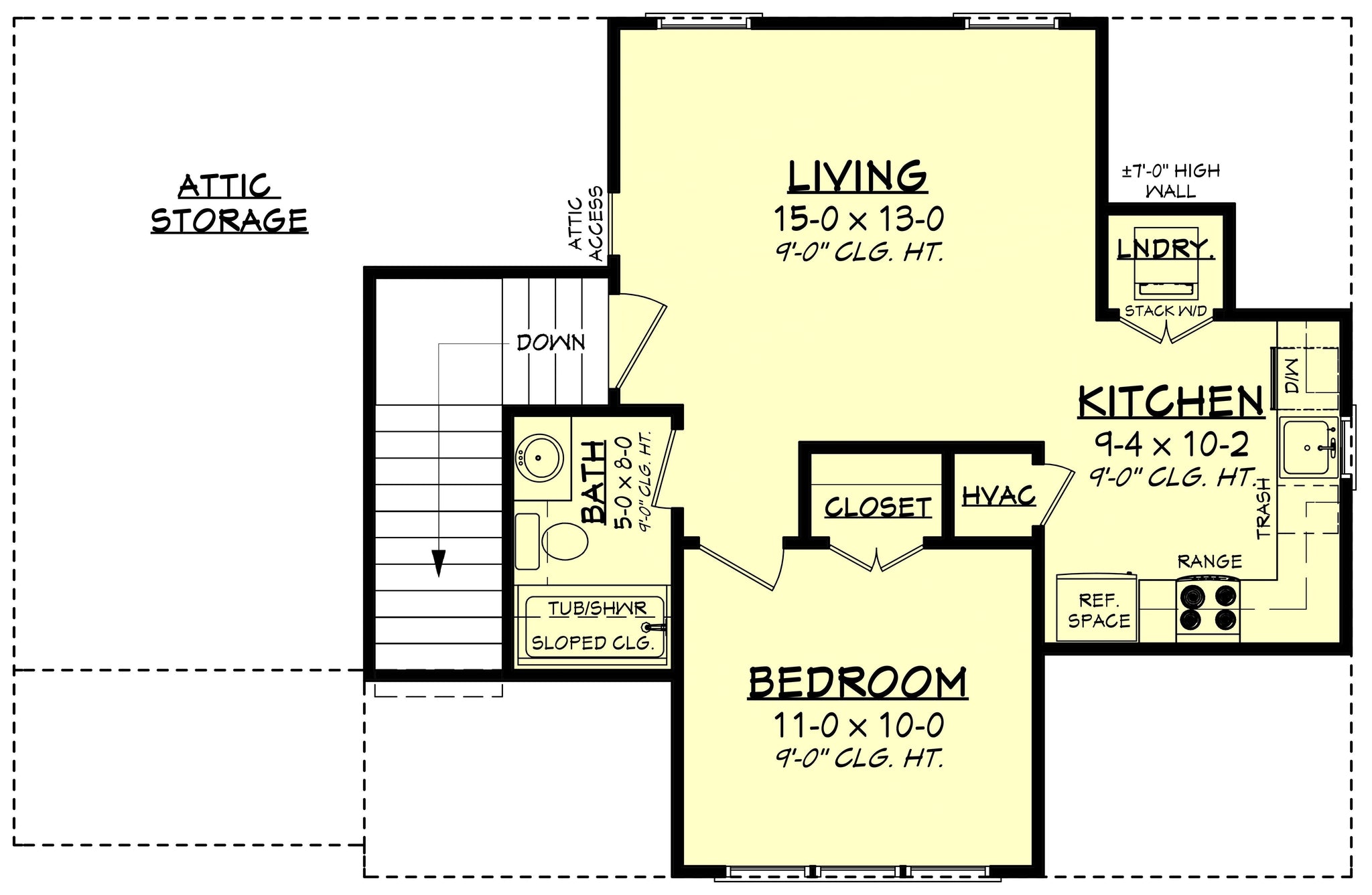 This cozy carriage house plan maximizes functionality in its compact design, offering a total living area of 522 sq. ft. on the second floor. The charming first floor features a spacious garage with 1,063 sq. ft. and three bays, perfect for vehicles or additional storage. The home includes a welcoming front porch, ideal for relaxing outdoors.
