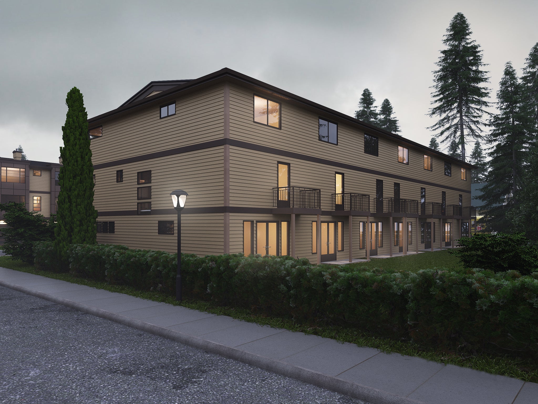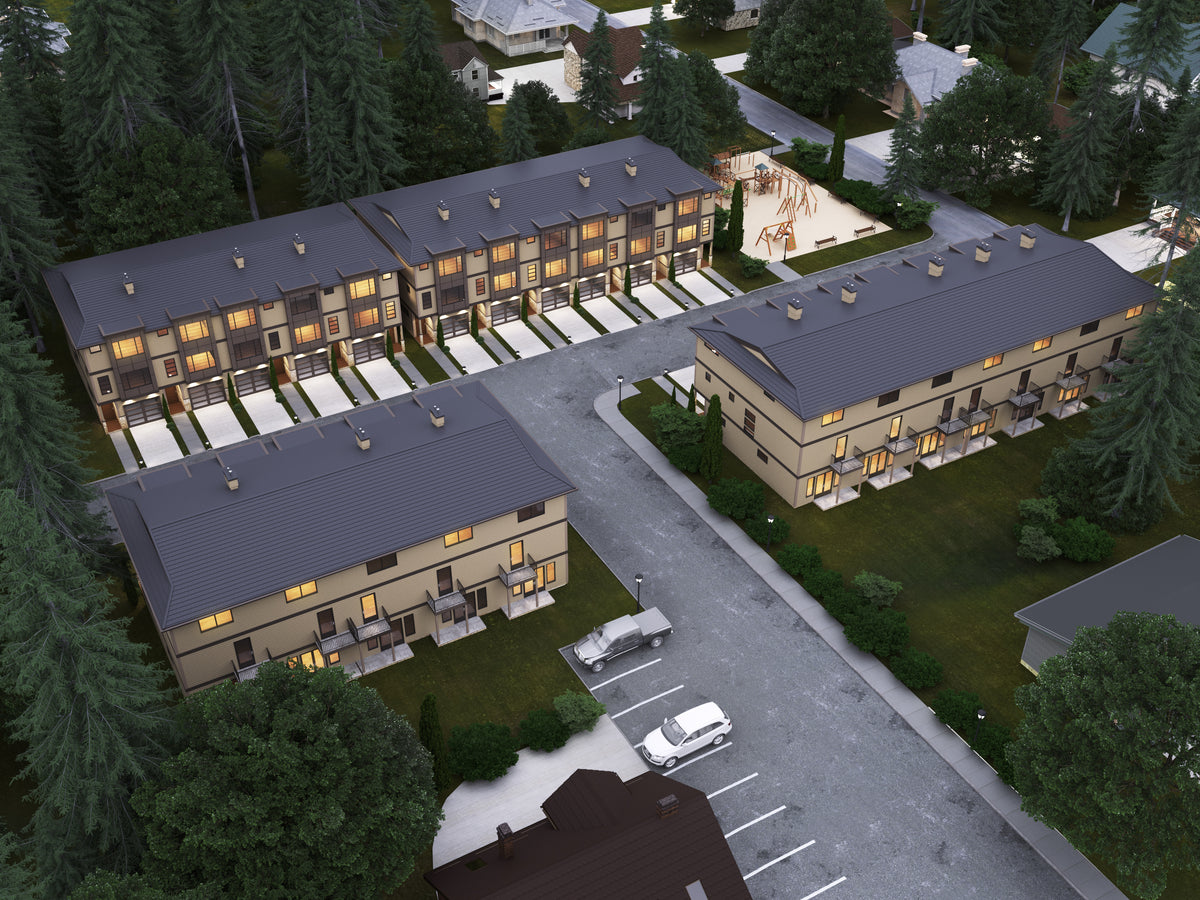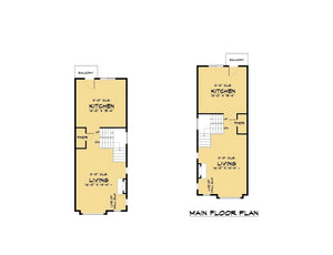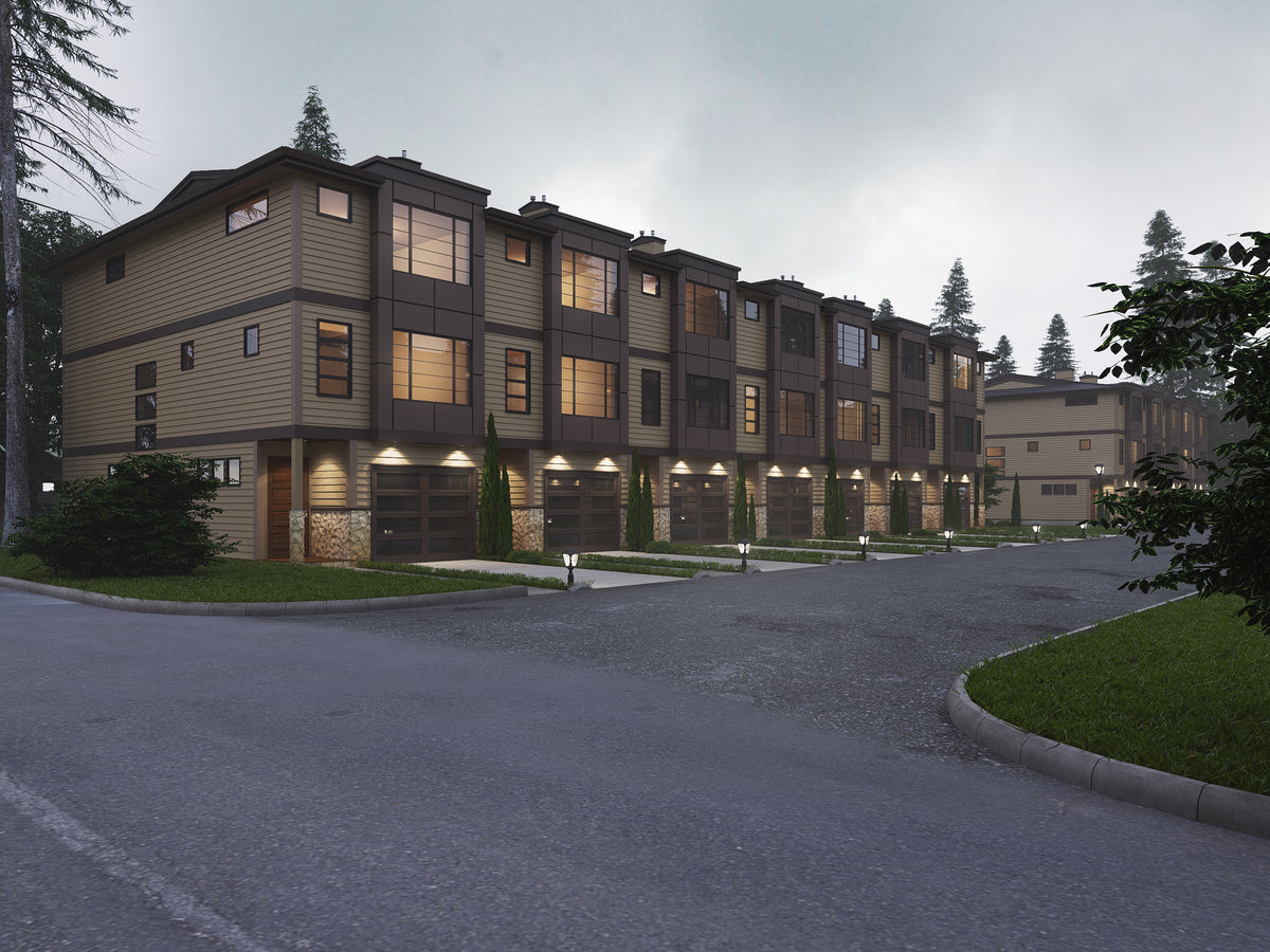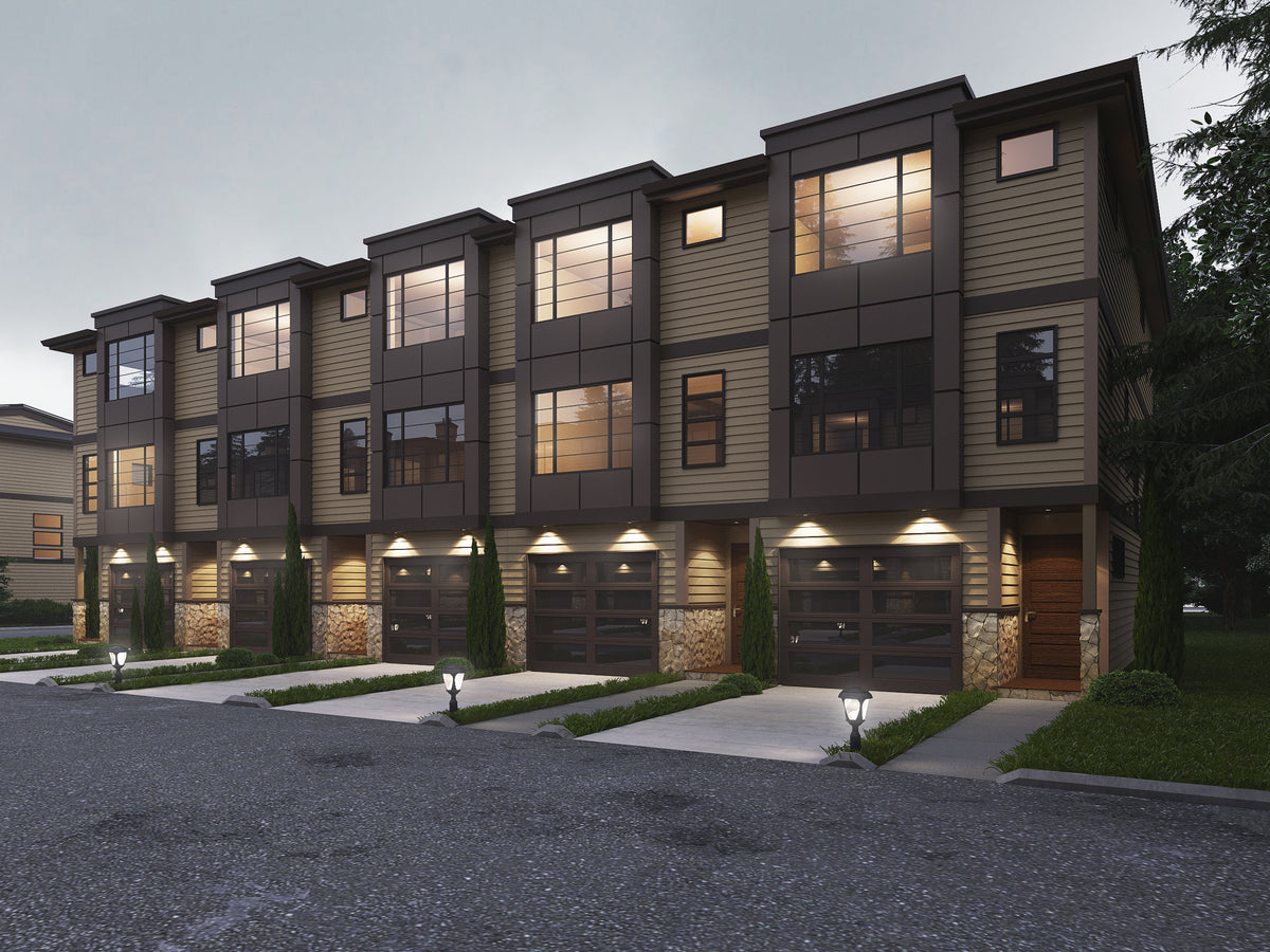 The ground floor of each unit includes 466 sq ft of heated space plus a 243 sq ft garage, ideal for entry-level living or a recreation room. The main level delivers 664 sq ft of open-concept kitchen, dining, and living areas, while the upper level offers 679 sq ft with spacious bedrooms and en-suites. Outdoor living is also built in, with each unit enjoying a 46 sq ft balcony and 30 sq ft patio. Designed with a low 3:12 roof pitch, truss framing, and 2x6 wall construction, this contemporary plan offers lasting style, durability, and incredible investment value.