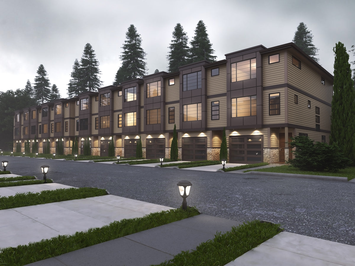 This sleek and efficient 7,236 sq ft modern quadplex townhouse offers four identical 3-level units, each delivering 1,809 sq ft of thoughtfully designed living space. Perfect for investors or multi-family living, each unit includes 2 bedrooms, 2.5 bathrooms, and a private 1-car garage. The stylish exterior is matched by smart interiors featuring open floor plans, walk-in closets, and dedicated media rooms and loft/balcony spaces that enhance both form and function.