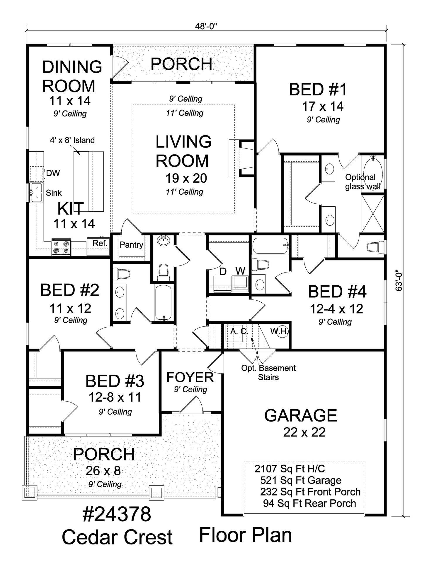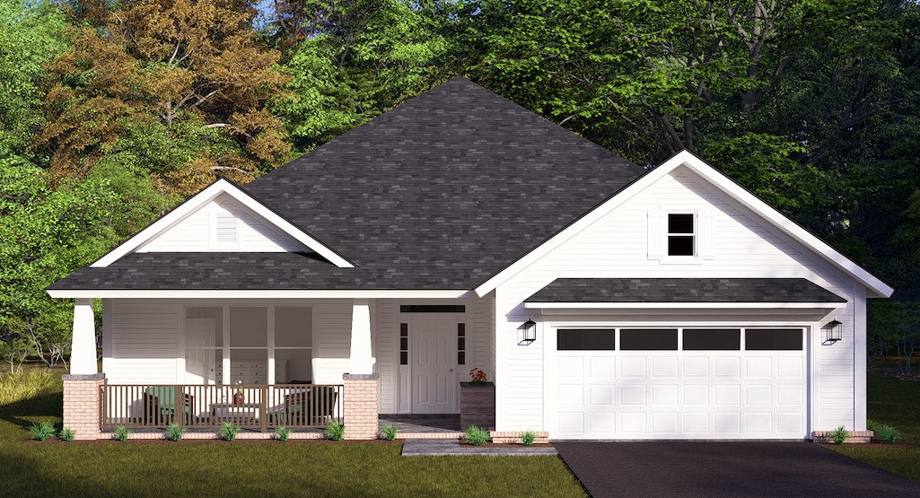 This spacious 2,107 sq ft home offers a practical and comfortable layout with 4 bedrooms and 3 bathrooms. The first floor features an open concept design with a well-equipped kitchen, complete with a walk-in pantry for extra storage. The first-floor master suite provides privacy and convenience, with direct access to the laundry room for added functionality. A cluster bedroom layout keeps additional bedrooms close by but separate, offering comfort and quiet. The game room provides a versatile space for relaxation or entertainment. Enjoy outdoor living with a large covered front porch and a rear porch, perfect for enjoying the outdoors. The 521 sq ft garage accommodates 2 vehicles with a front-load design. Built on a slab foundation with 2x4 wall framing and truss roof framing, this home balances modern design and everyday practicality. With a width of 48 feet and a depth of 63 feet, this home is ideal for a growing family.