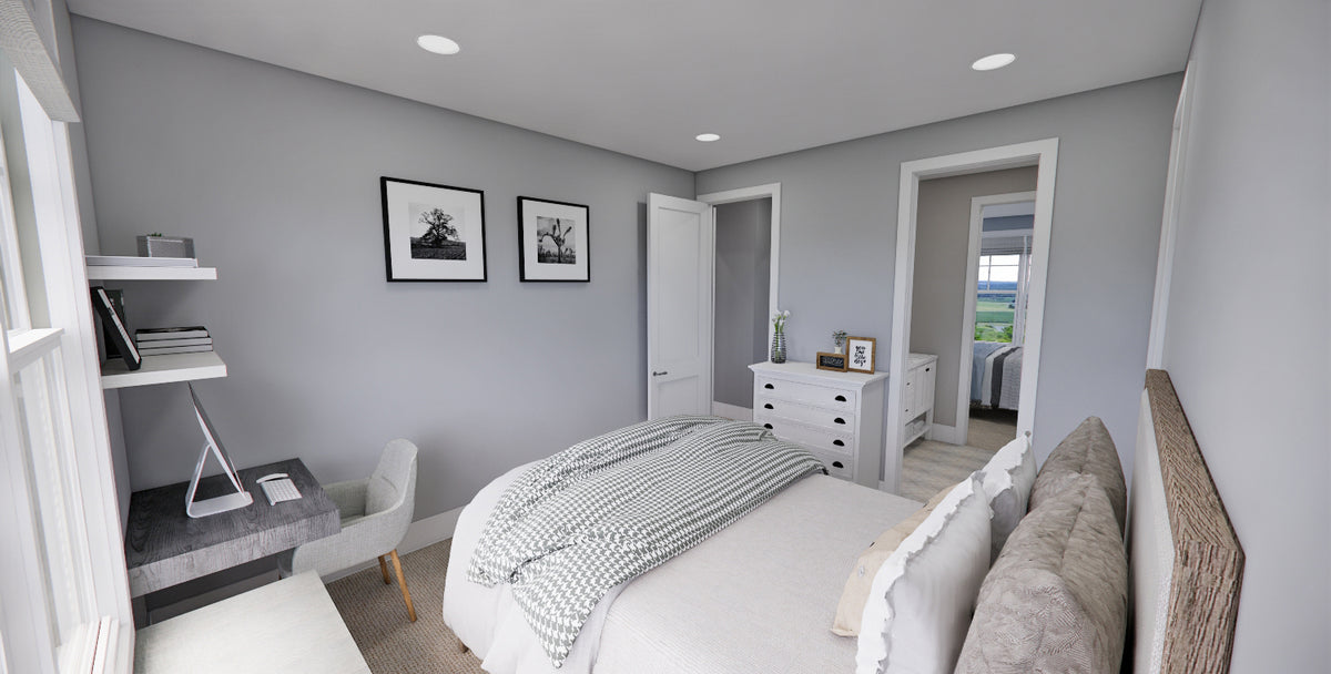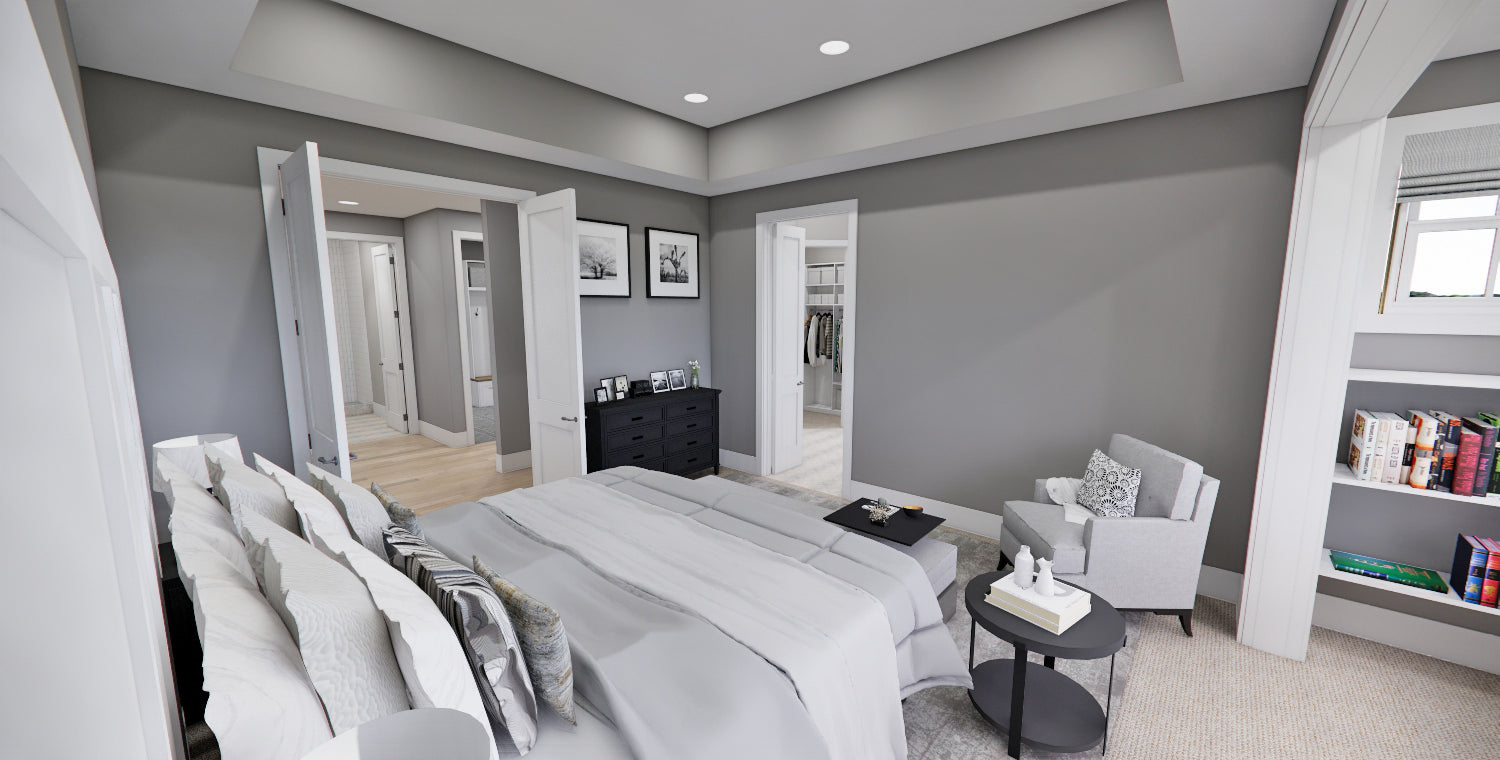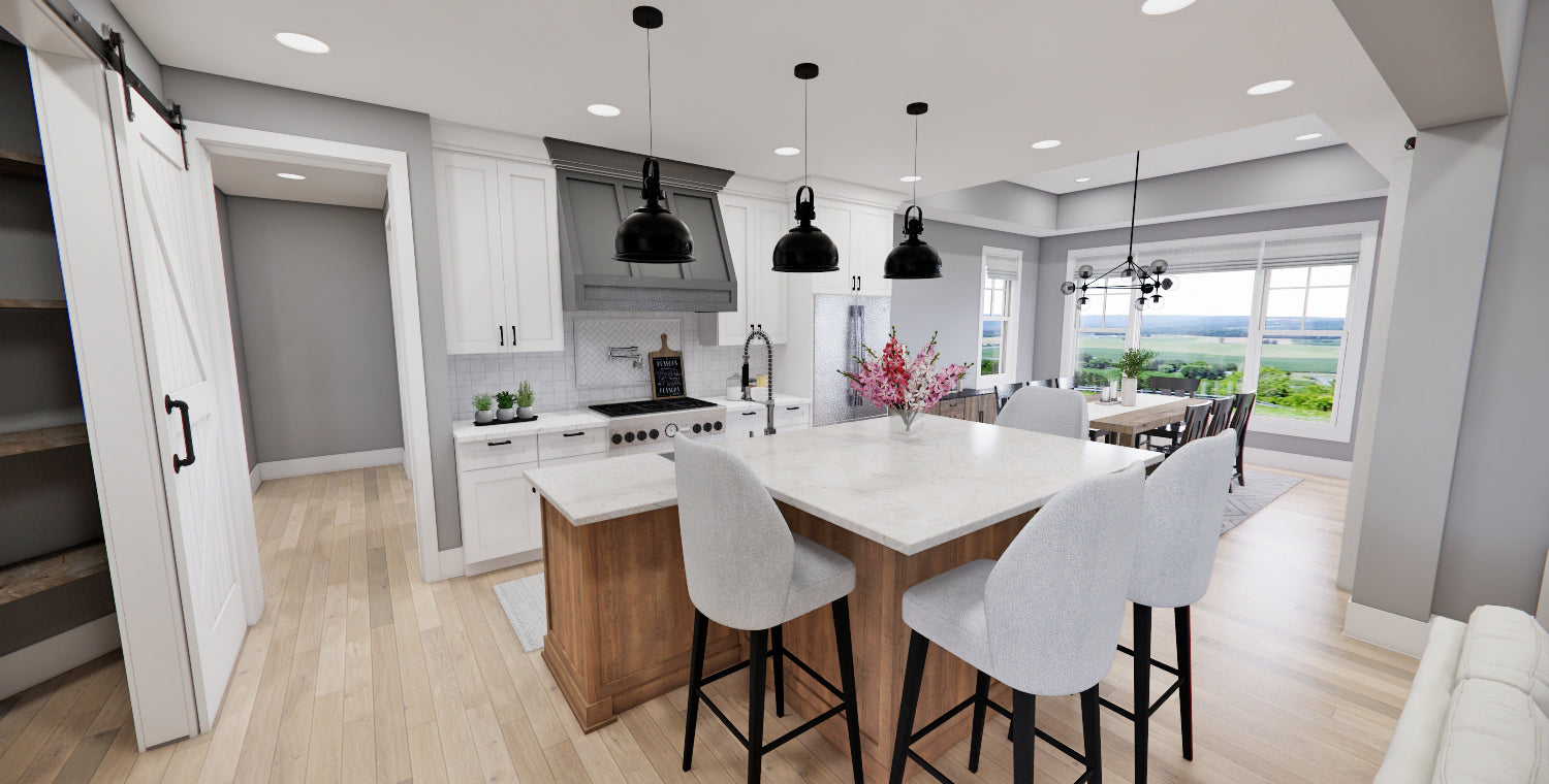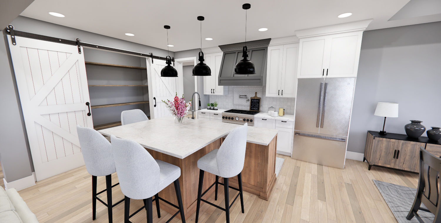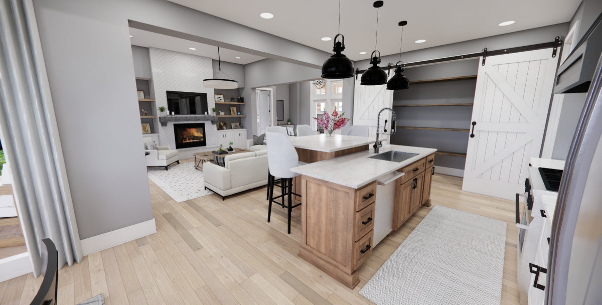 The open-concept living area includes a large kitchen with a walk-in pantry hidden behind barn doors, a generous island with seating for four, and a bright dining space with access to the backyard. The private master suite offers a cozy sitting area, dual walk-in closets, and a luxurious bathroom. Two additional bedrooms with window seats and walk-in closets share a Jack and Jill bathroom, while a fourth room near the entry can flex as an office or guest room. With thoughtful details throughout, this home is as welcoming as it is practical.