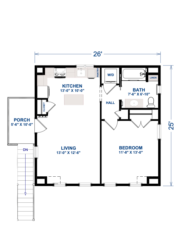A complete set of working drawings delivered in digital PDF format. This option comes with a license to build ONE home and includes a copyright release for printing unlimited sets of plans and making modifications.