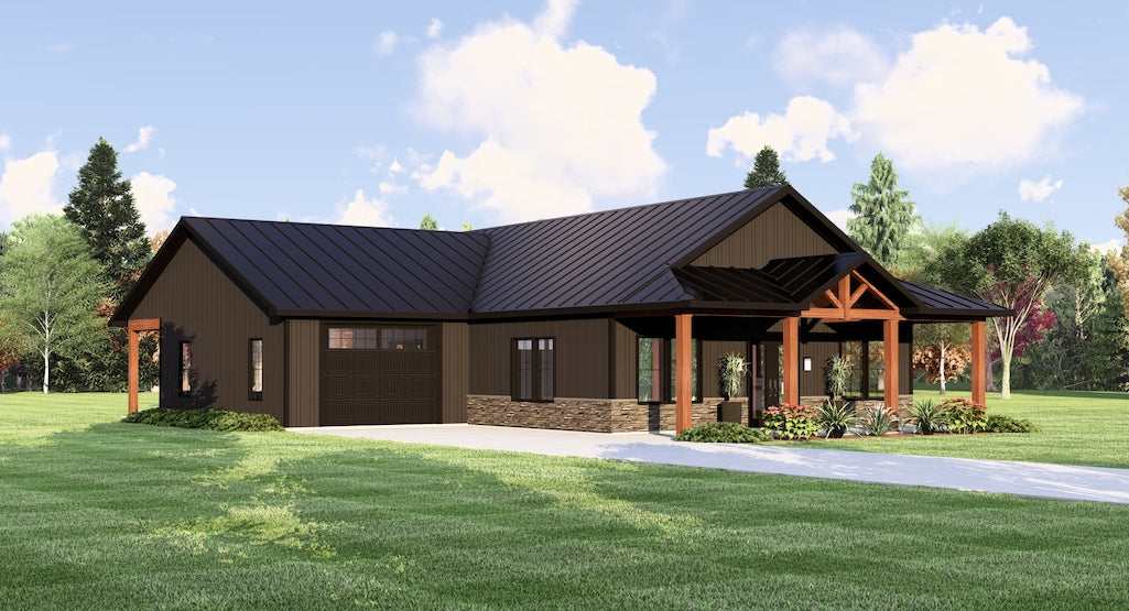 Five printed sets of working drawings shipped to you, plus a digital version in PDF format. This option comes with a license to build ONE home and includes a copyright release for printing unlimited sets of plans and making modifications.