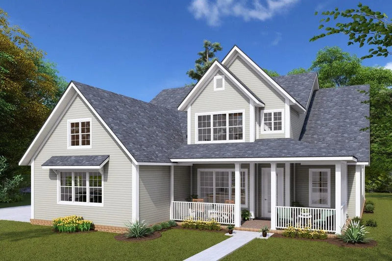 Upstairs, the 1,158 sq ft second floor features a versatile game room and an additional laundry room, enhancing functionality. Enjoy outdoor living on the covered front and rear porches, while a mudroom provides practical storage solutions. The side-entry, three-bay garage (609 sq ft) adds extra space for vehicles and storage. With 2x4 wall framing and an 8:12 roof pitch, this brick exterior home exudes charm and comfort throughout.