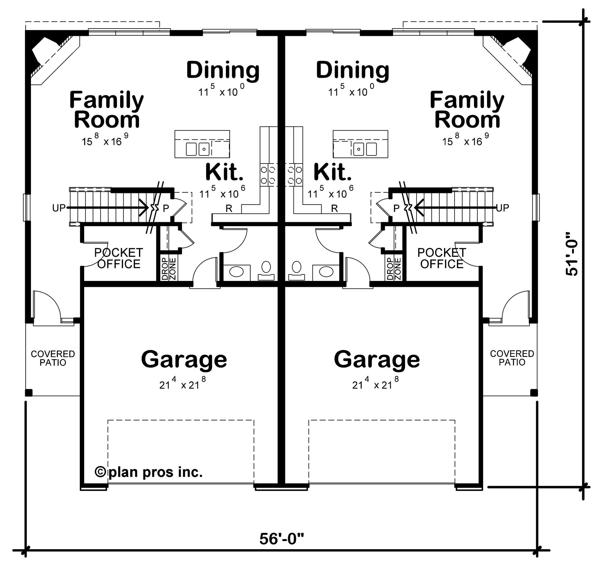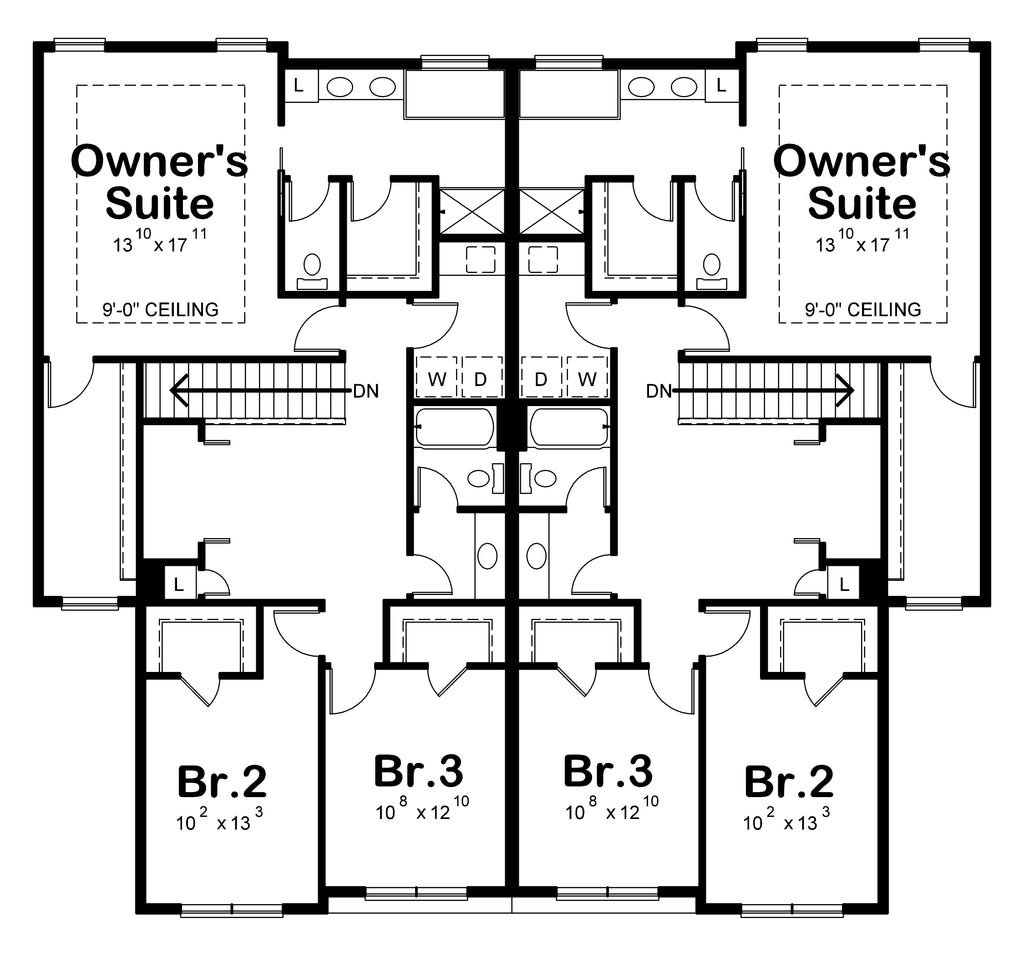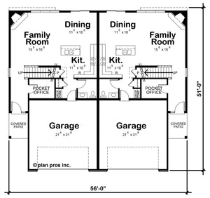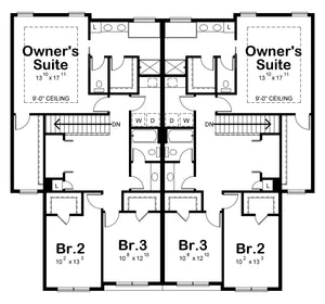 This thoughtfully designed duplex house plan features two matching side-by-side units, each offering a generous 2,064 square feet of comfortable living space, each 28' wide by just over 50' deep, perfectly designed to maximize space and privacy. Both Unit A and Unit B boast three spacious bedrooms, two full bathrooms, and a half bathroomβmaking them ideal for families, guests, or investment opportunities. Each home comes with an attached two-car garage, providing 483 square feet of convenient parking and storage.