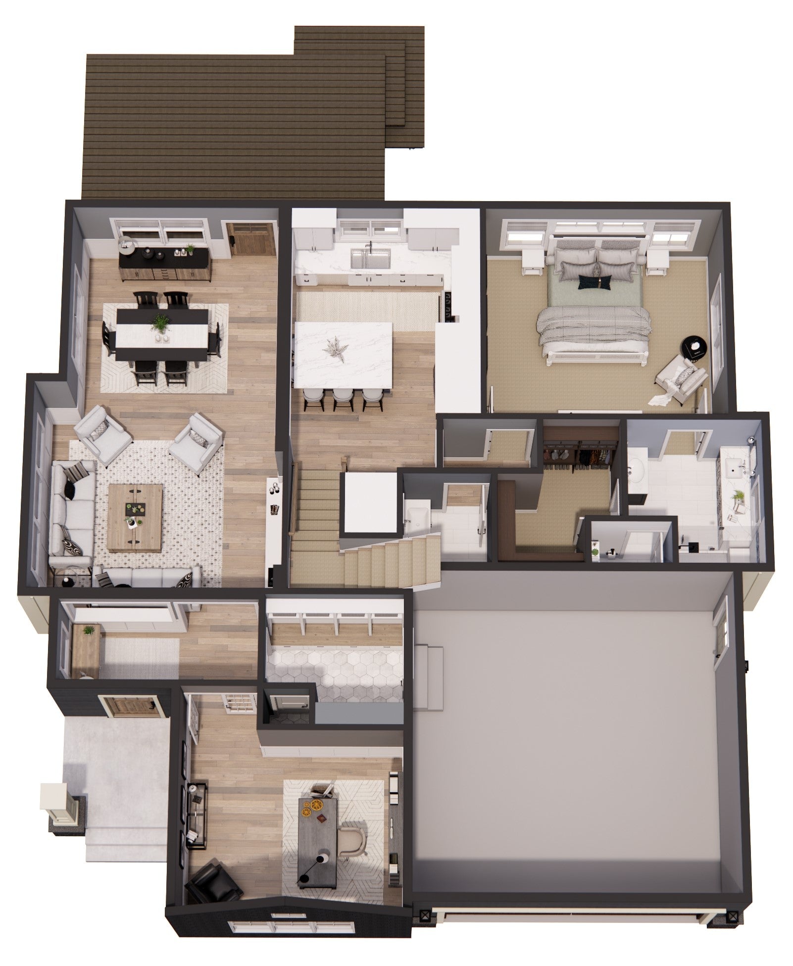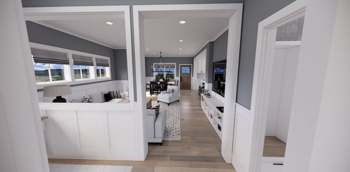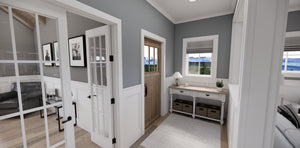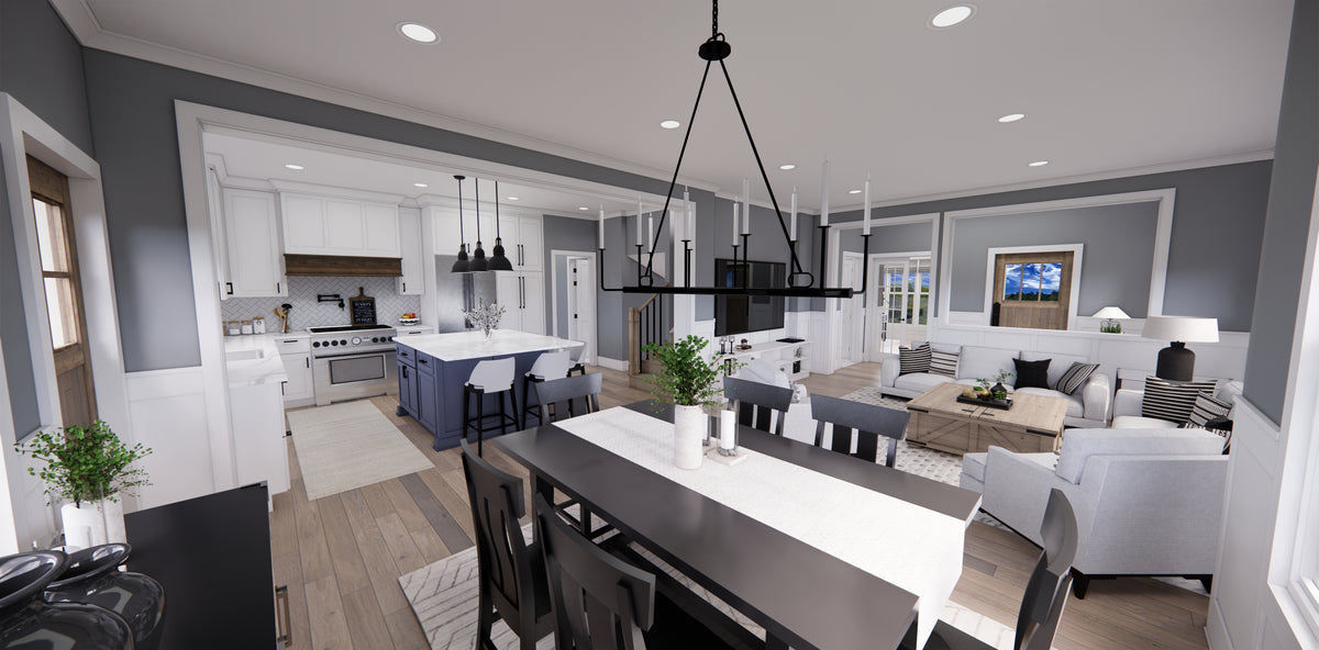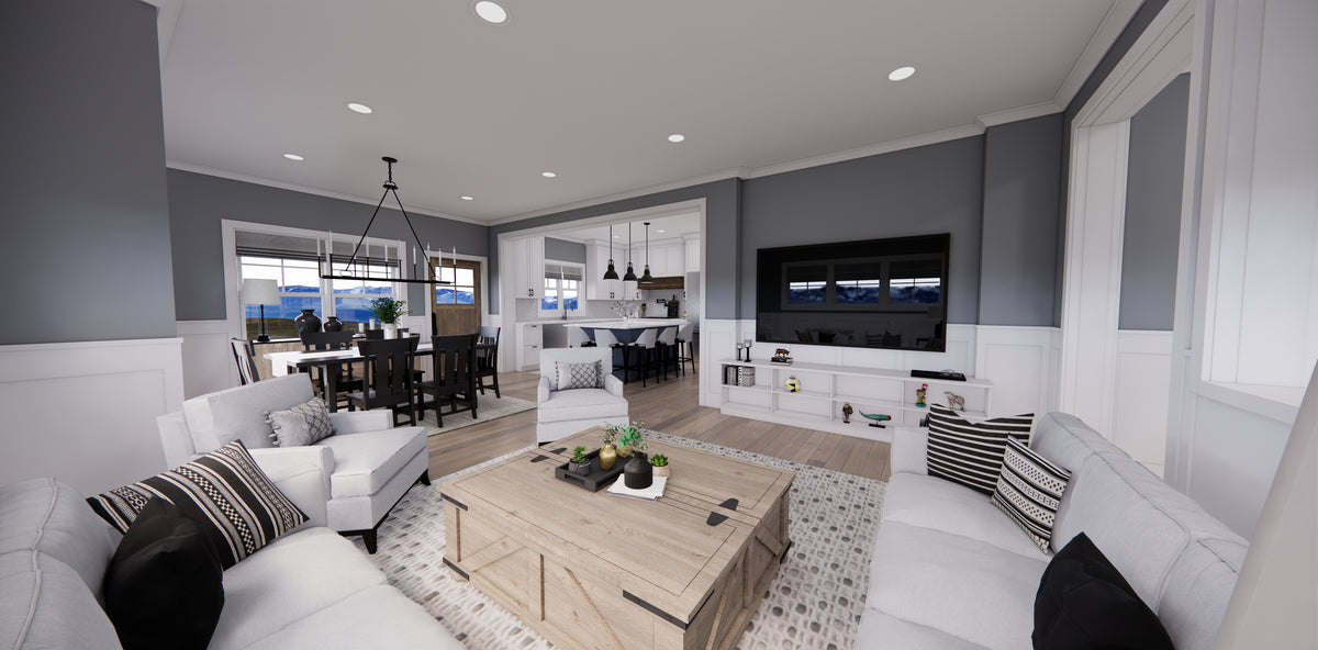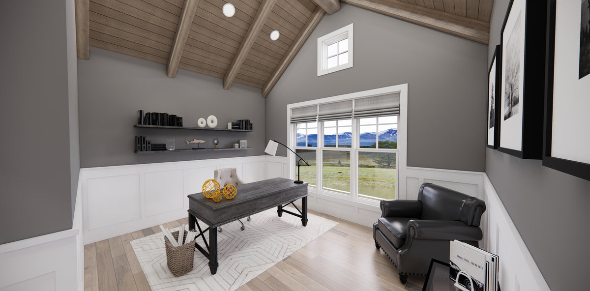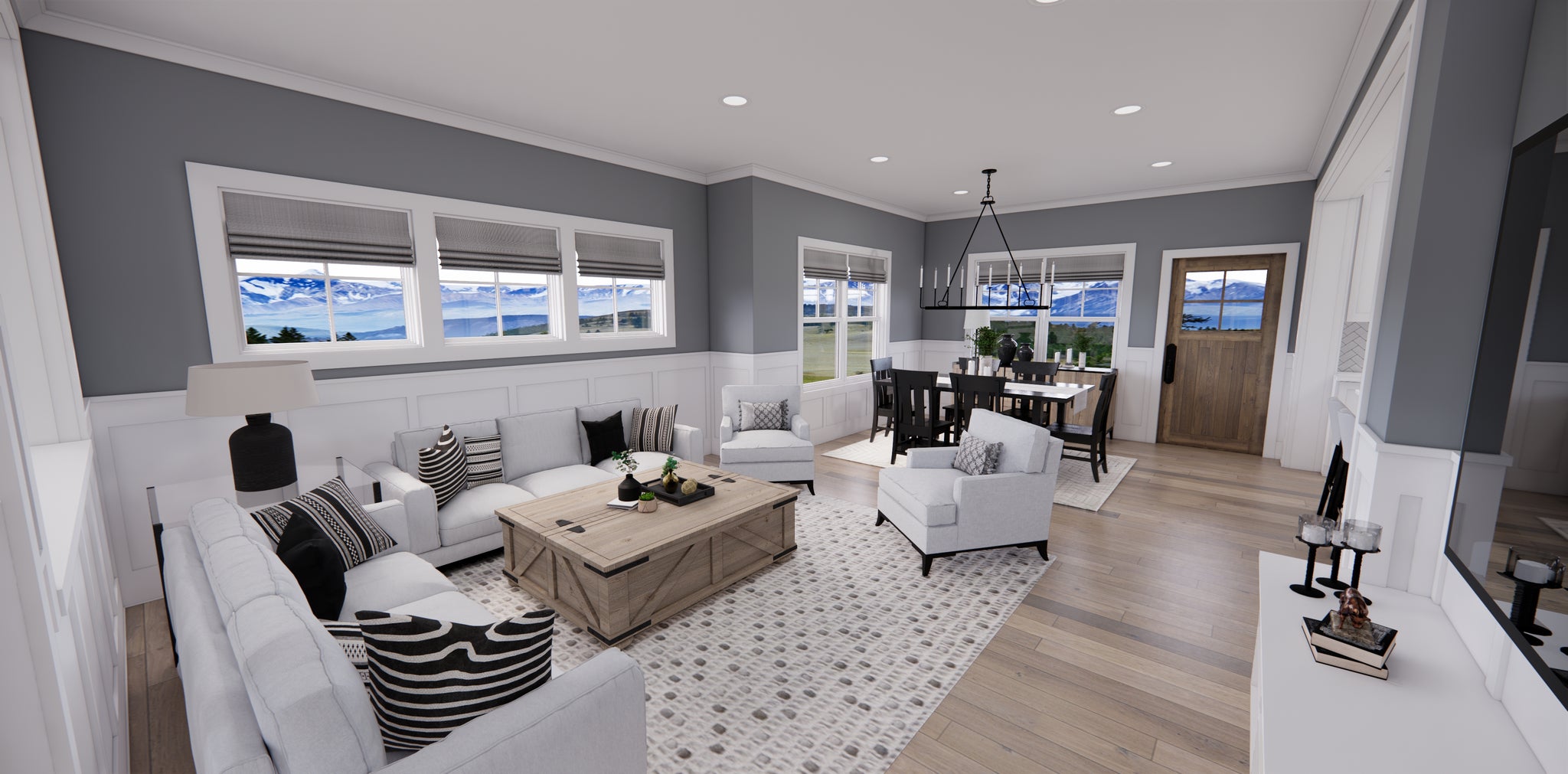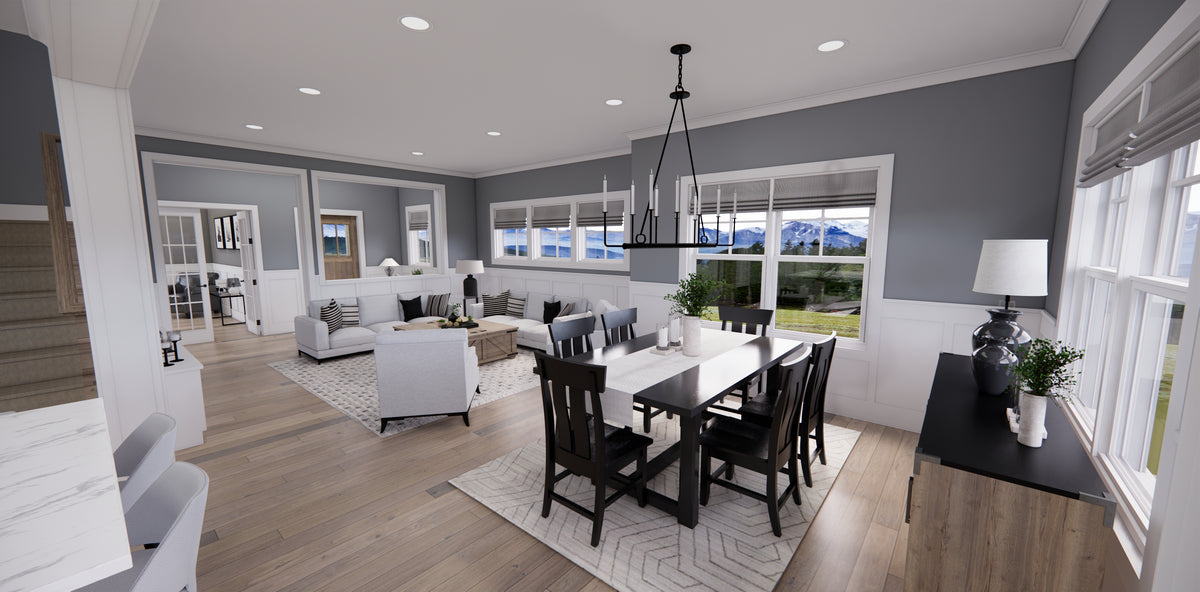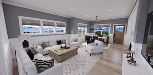 This beautifully crafted 1,962 sq ft Traditional-style home maximizes every inch with thoughtful design and functionality. The main level features an open-concept great room, dining area, and kitchen filled with natural light from numerous windows and rear access. At the heart of the kitchen is a large island with seating for five—perfect for entertaining or casual family meals. Just off the main space is a vaulted home office, a convenient mud/laundry room, and direct access to the 2-car garage.