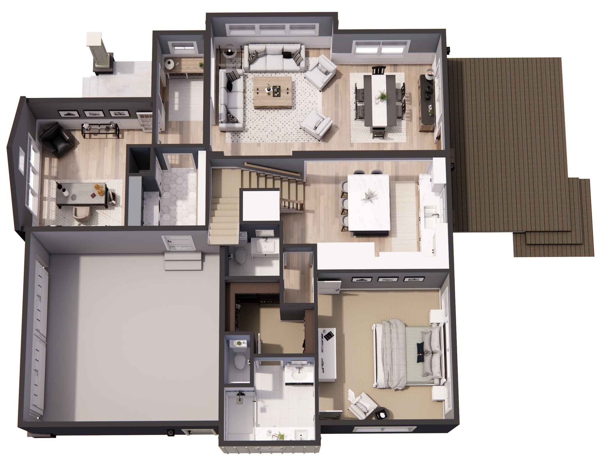 Walkout Basement - This foundation is typically suited for rear-sloping lots and provides storage or living areas. Walkout basements have doors that provide access to the outside.