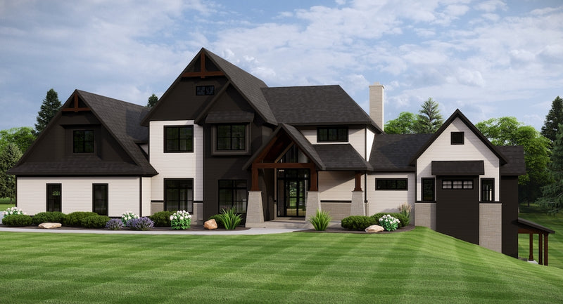 This Transitional Tudor house plan combines timeless architecture with a layout designed for modern lifestyles, offering both comfort and sophistication.