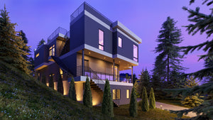 This sophisticated 4,031 sq ft home offers three expansive levels of stylish living, complete with 4 bedrooms, 4.5 bathrooms, and a 3-car front-load garage. Designed with modern aesthetics in mind, it features sleek low-slope roof pitches (0.5:12 and 0.25:12) and strong 2x6 wall framing for long-lasting durability. The layout maximizes both function and luxury, offering spacious indoor and outdoor areas, including a 1,260 sq ft deck and a 637 sq ft veranda for exceptional outdoor living.