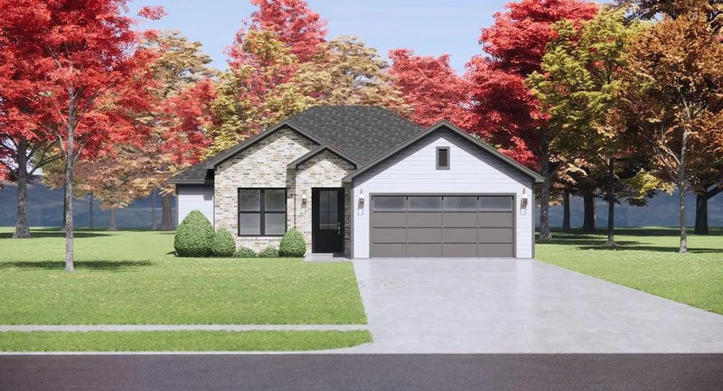 Welcoming outdoor spaces include a charming front porch and a cozy rear porch, perfect for enjoying morning coffee or evening gatherings. The home’s two-car garage, accessible from the front, provides ample storage and parking solutions. With its compact yet functional design, this home is an ideal choice for families seeking a blend of comfort and style in a modest footprint.