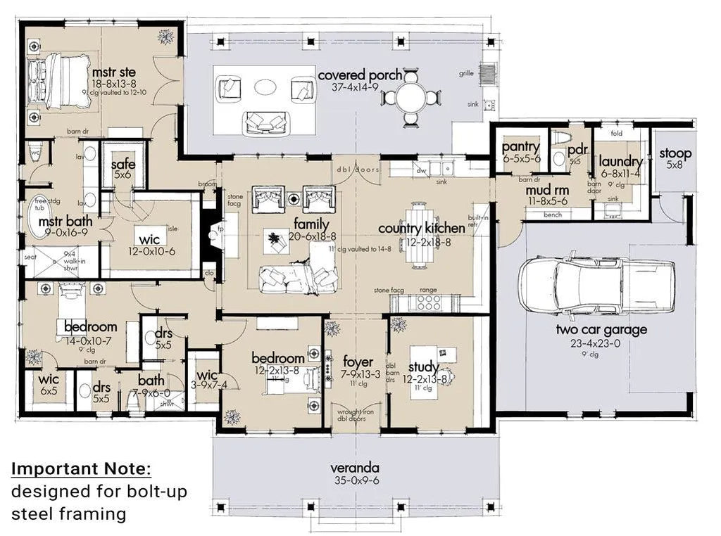 Our foundation plans have been designed for universal conditions and may need to be adjusted to fit your specific site conditions. The foundation should be modified by a local structural engineer to comply with soil testing laboratory findings and local building requirements.