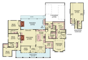 Experience this spacious 2,789 sq ft home designed for modern comfort and functionality. The main floor features an open living area, perfect for gatherings, along with a gourmet kitchen complete with a walk-in pantry, butler's pantry, and convenient access to both indoor and outdoor dining spaces. Enjoy the added luxury of a first-floor owner's suite, home office, and split bedroom layout for added privacy. The bonus room upstairs offers versatile space for a playroom, media area, or guest quarters. Outside, a cozy fireplace and kitchen make the covered porch ideal for entertaining year-round. With 4 bedrooms, 3.5 baths, and thoughtful design details throughout, this home is crafted for both relaxation and entertaining.
