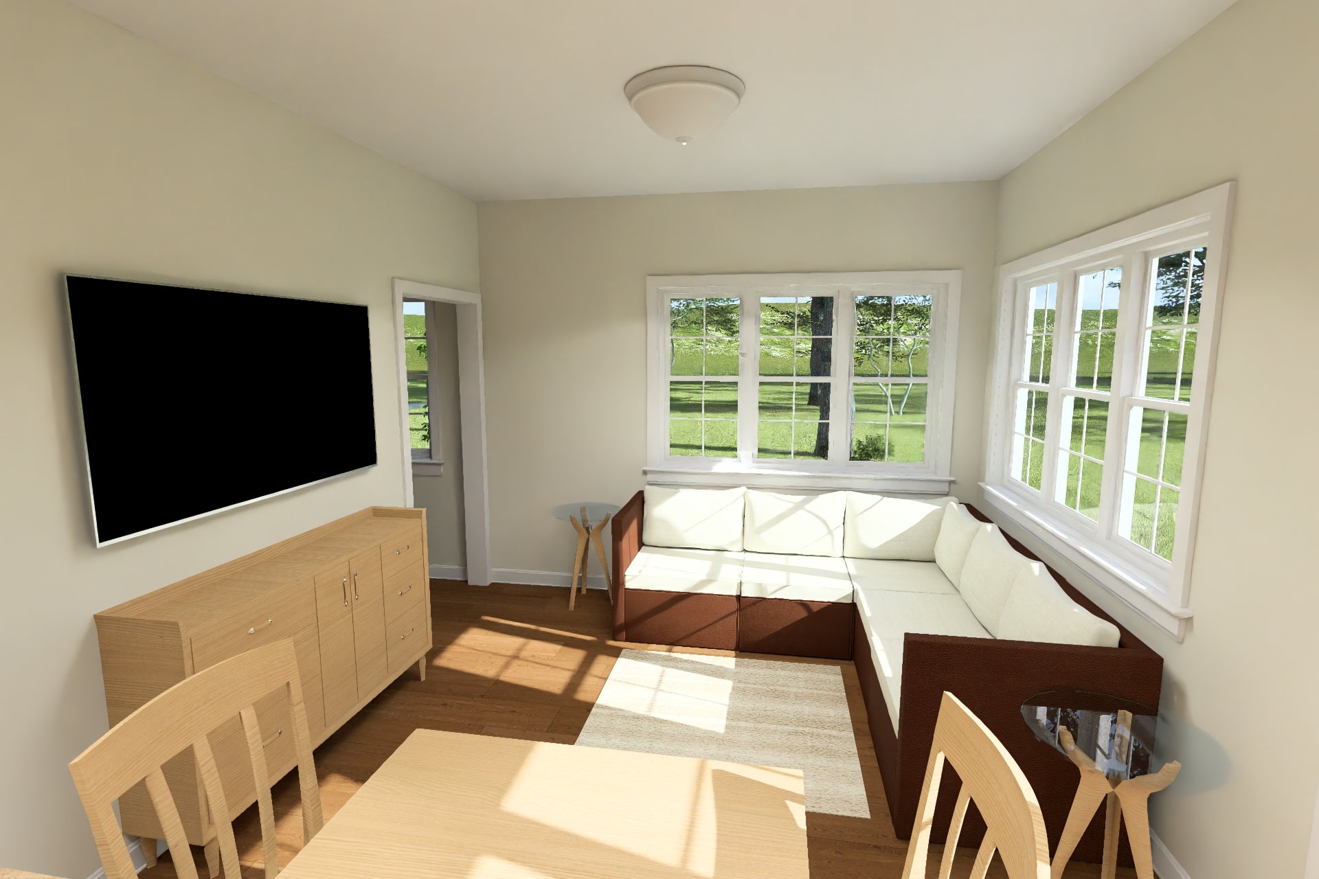 A welcoming foyer at the entrance of each unit provides a defined transition from the front porch into the interior living space, adding a sense of arrival and polish to the design. The covered front porch not only improves the home’s exterior character but also offers a practical outdoor space for seating or entry protection from the elements.