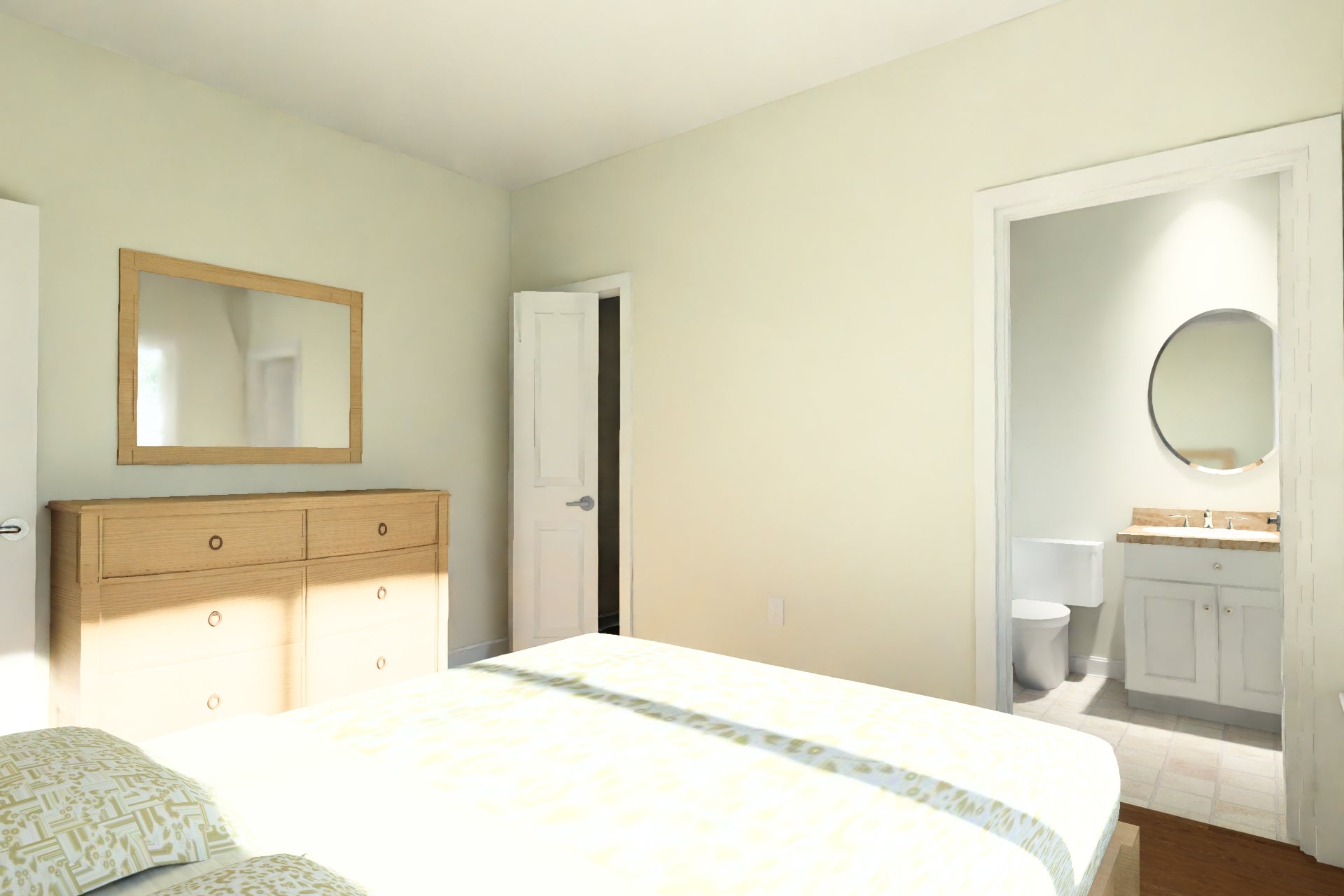 Each residence features a private master suite, thoughtfully separated from the main living area for added comfort. The bedroom includes a walk-in closet, offering generous storage rarely found in homes of this size. The adjoining private master bathroom is equipped with a double vanity sink, adding functionality and convenience for daily routines. This smart layout ensures that each unit lives comfortably as a complete, independent home.