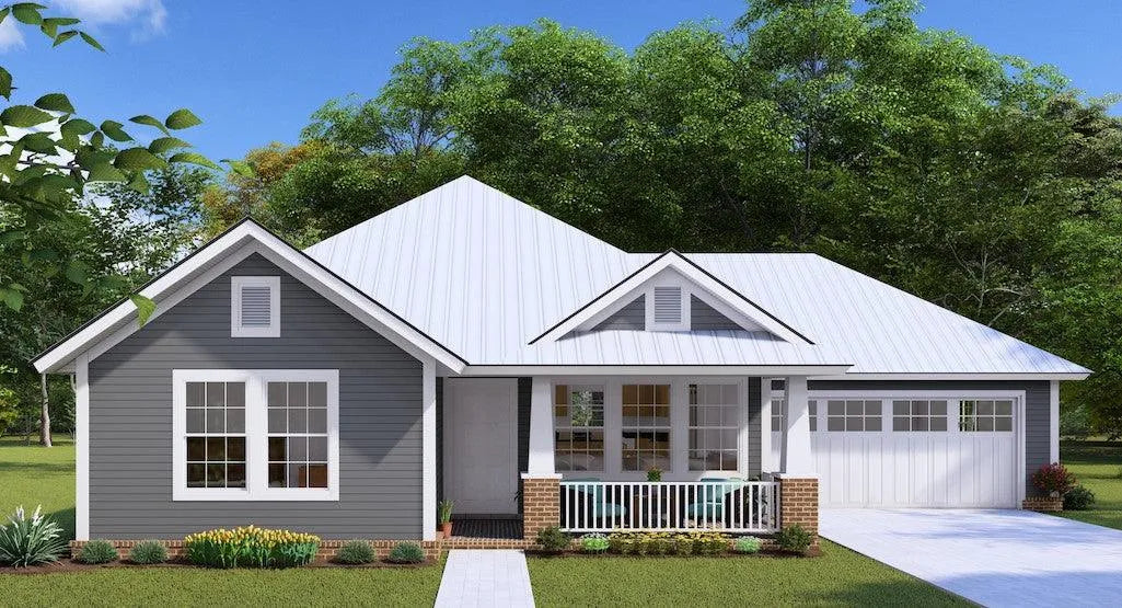This thoughtfully designed 1,271 sq ft home is ideal for families, featuring three bedrooms and two bathrooms. The first floor includes a welcoming front porch and a cozy rear porch, perfect for outdoor relaxation. A two-bay garage provides ample space for vehicles and storage, enhancing the home's practicality.