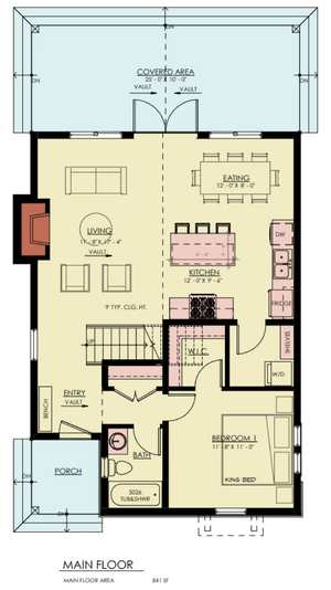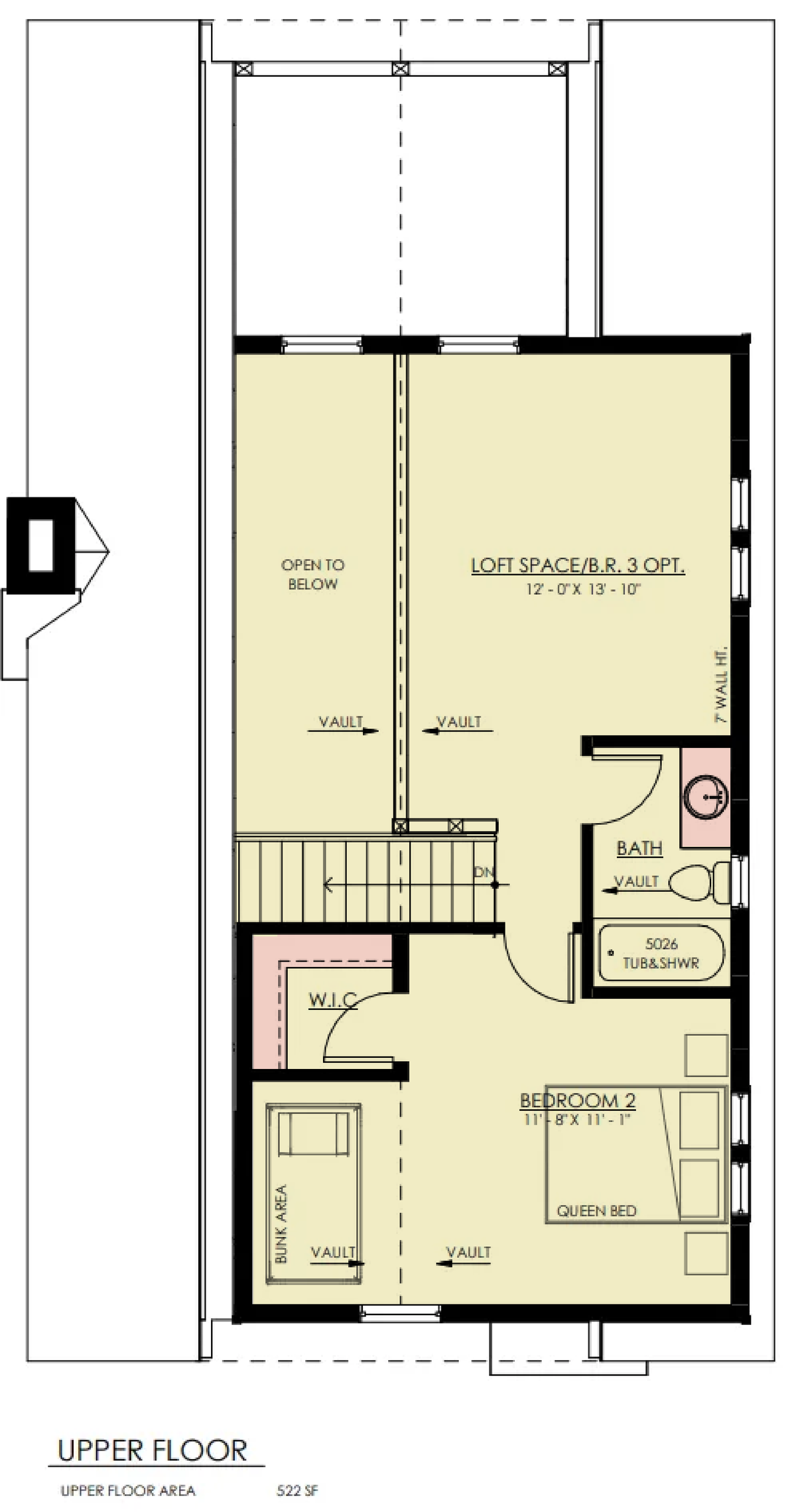 This charming home offers 1,364 sq ft of living space, with 841 sq ft on the first floor and 522 sq ft on the second floor. It features three bedrooms and two bathrooms, including a split-bedroom layout for added privacy. The first floor is highlighted by a great room, a breakfast area, and a convenient laundry room. A covered front porch adds curb appeal, while the spacious deck provides a perfect outdoor retreat. The second-floor loft can be used as a flexible space, ideal for an office or playroom. With 2x6 wall framing and a stick-framed roof, this home combines comfort and durability.
