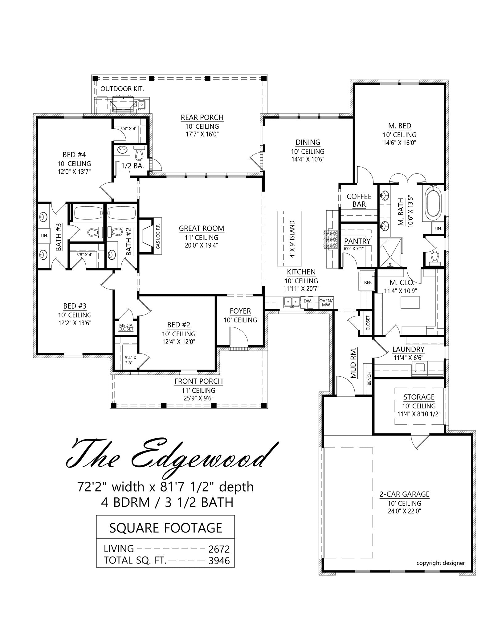 This beautifully designed 4-bedroom, 3.5-bathroom home spans 2,672 sq ft, combining luxury and practicality. The first-floor master suite features a spacious walk-in closet and convenient laundry access, while the open floor plan creates a seamless flow between the Great Room, kitchen with an island, and breakfast area. The split-bedroom design ensures privacy, and the Jack and Jill bathroom serves two of the bedrooms. Enjoy the outdoors with both a covered front and back porch, plus an outdoor kitchen for easy entertaining. The home includes a mudroom, plenty of storage space, and a workshop for DIY projects. A courtyard-style 2-car garage completes this versatile, family-friendly home.