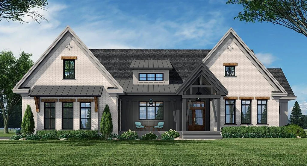 A show-stopping home with tons of curb appeal, the Farmhouse inspired Emarie May house plan flaunts contrasting colors and country aesthetics with modern flair. With 2336 sq. ft. of total living space, this house plan offers three bedrooms, two bathrooms with one half bathroom. A two-car side entrance garage is offered as standard with the option for a three-car side load or two/three-car front load garage.