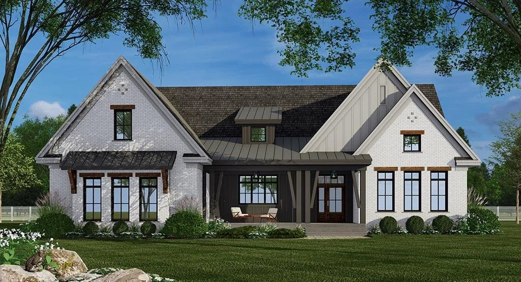 This elegant Modern Farmhouse offers 2,364 sq. ft. of heated living space, perfectly blending charm and functionality. With 3 bedrooms, 2.5 bathrooms, and a spacious open-concept layout, this home is designed for comfort and convenience. The inviting covered front porch leads into a stunning living area featuring vaulted ceilings and seamless access to the rear porch, creating an ideal space for entertaining or relaxation. The kitchen boasts a large walk-in pantry, an oversized island, and plenty of counter space, making it perfect for family gatherings. The first-floor master suite offers privacy and luxury with a spacious walk-in closet and a spa-like bathroom, while two additional bedrooms share a Jack and Jill bathroom.