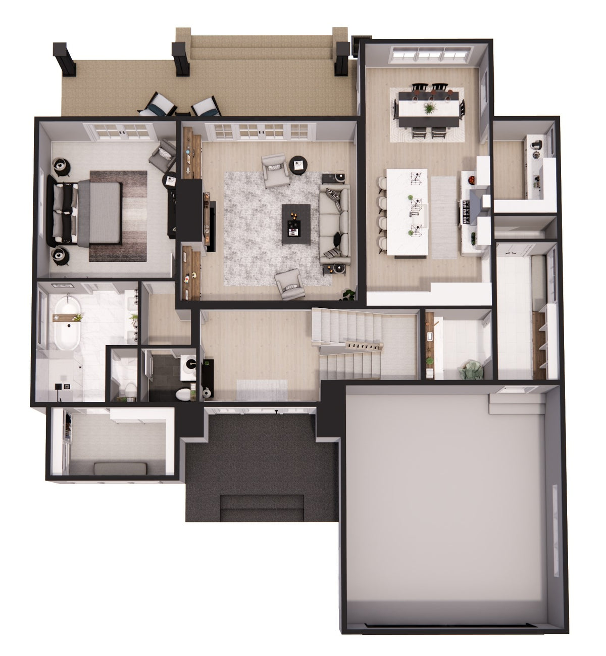 Walkout Basement - This foundation is typically suited for rear-sloping lots and provides storage or living areas. Walkout basements have doors that provide access to the outside.