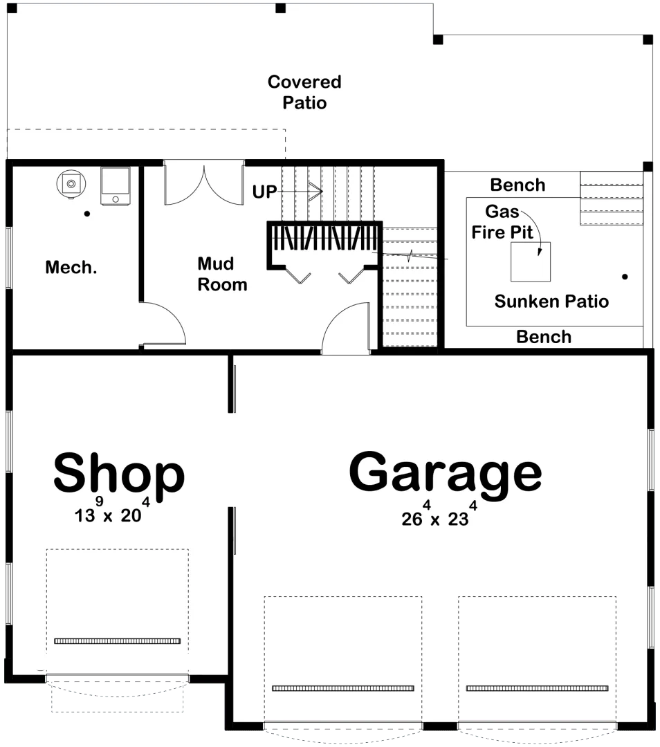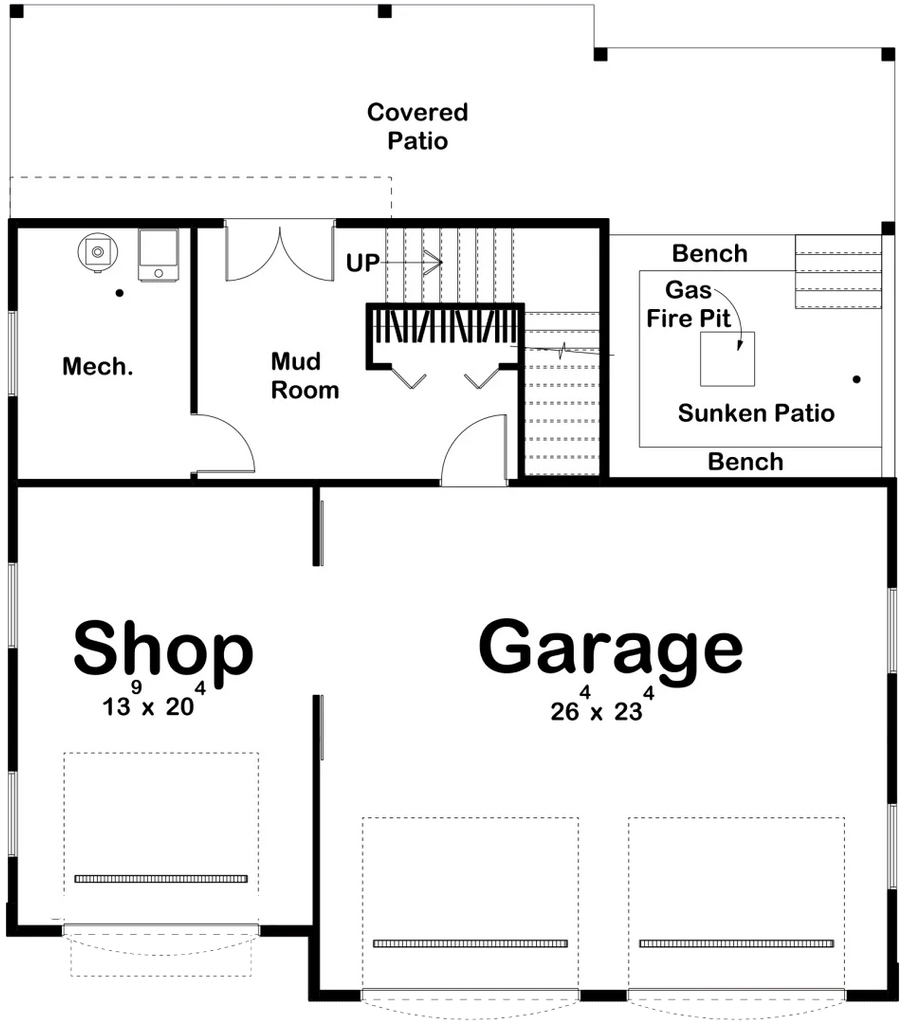 This plan is complete with a spacious two-car garage and additional shop area that provides an extra 296 square feet. Not interested in having a workshop? Turning it into an at-home gym would be a great addition.