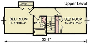 Upstairs, you'll find 383 sq. ft. dedicated to two additional bedrooms and a shared full bath—ideal for kids, guests, or a home office setup. The 12:12 pitched roof, 2x4 wall framing, and traditional siding give the exterior timeless curb appeal. With a narrow footprint of 33'8" wide by 32' deep, this home is a great choice for infill lots or neighborhoods with limited space.