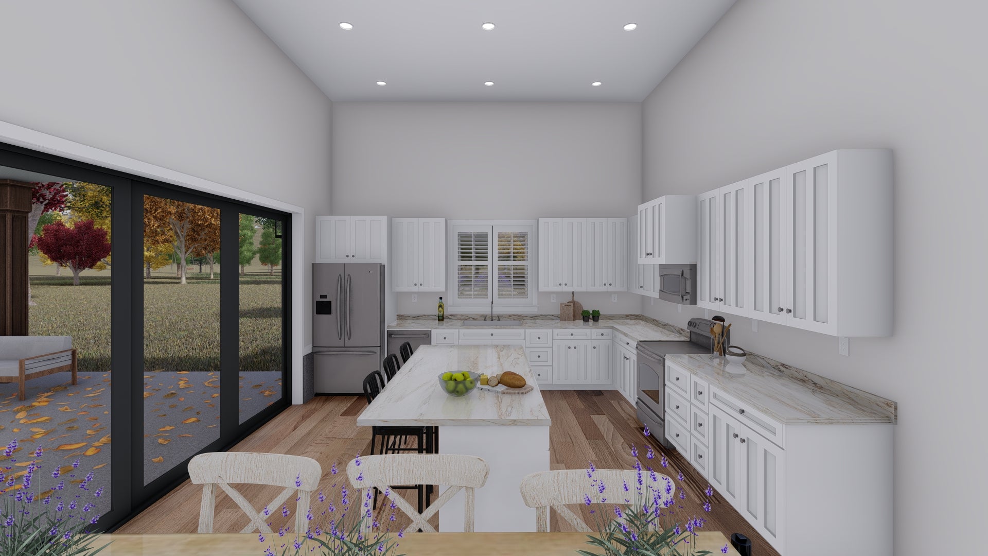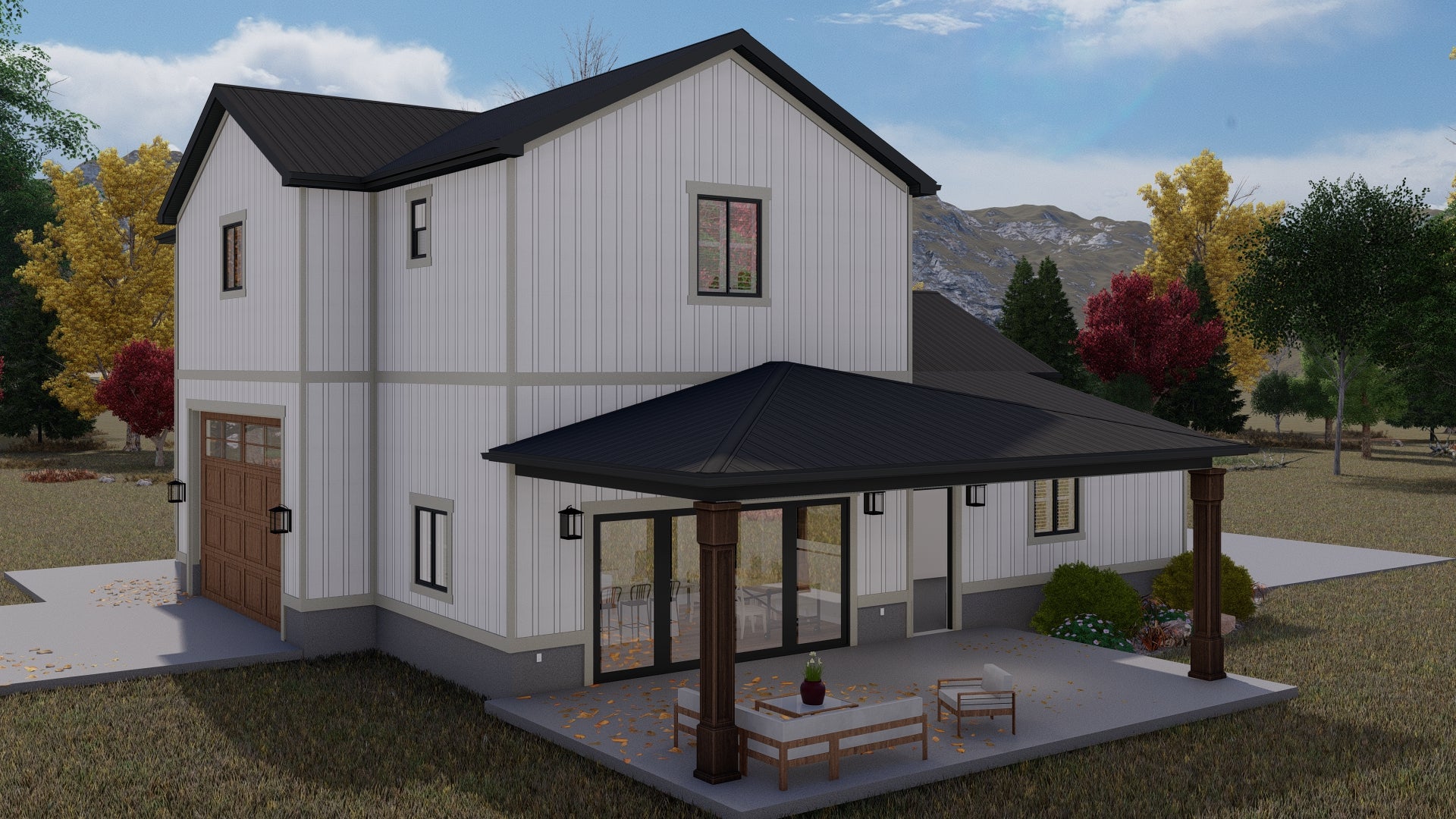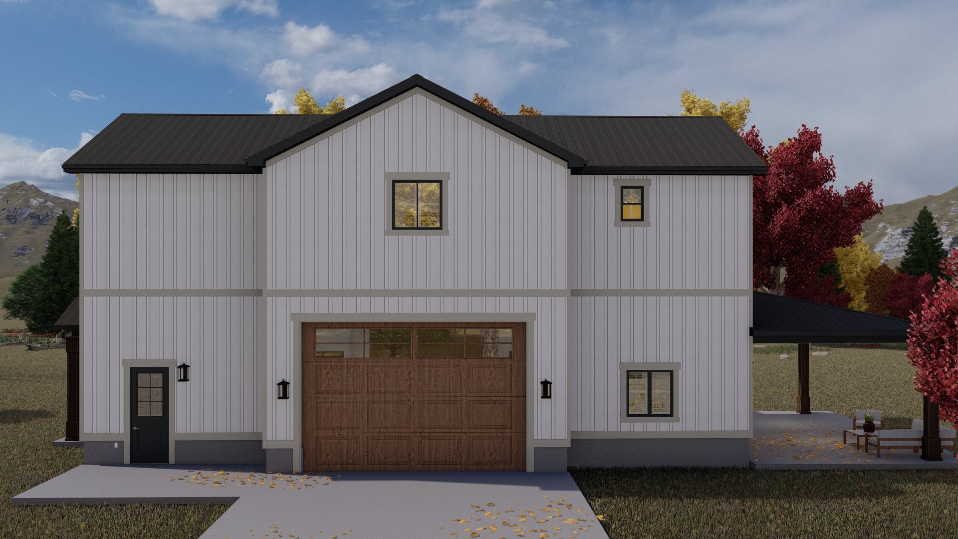 Perfect for families or anyone seeking flexible space, this home includes a 3-car front-load garage (12'8" wide) and over 500 square feet of covered porches — front and back — ideal for outdoor living. Built on a slab foundation with 2x6 framing and truss roof construction, the structure is solid and energy-efficient. With a building height of 29'7", dual roof pitches (6:12 and 3:12), and bold barndominium styling, this home offers both eye-catching curb appeal and functional comfort.