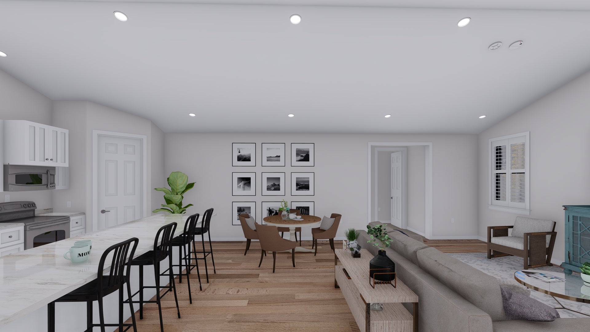 This spacious 2-bedroom barndominium-style house plan delivers 2,290 square feet of heated living space across two levels, blending rustic charm with modern design. The open-concept main floor features a large keeping/family room, a stylish kitchen with an island and walk-in pantry, and a dedicated mudroom that adds function to the front entry. With a split-bedroom layout, the master suite occupies the second floor, offering privacy, a large walk-in closet, and a spa-like en-suite bathroom. The secondary bedroom is also upstairs, conveniently located near the second-floor laundry room.
