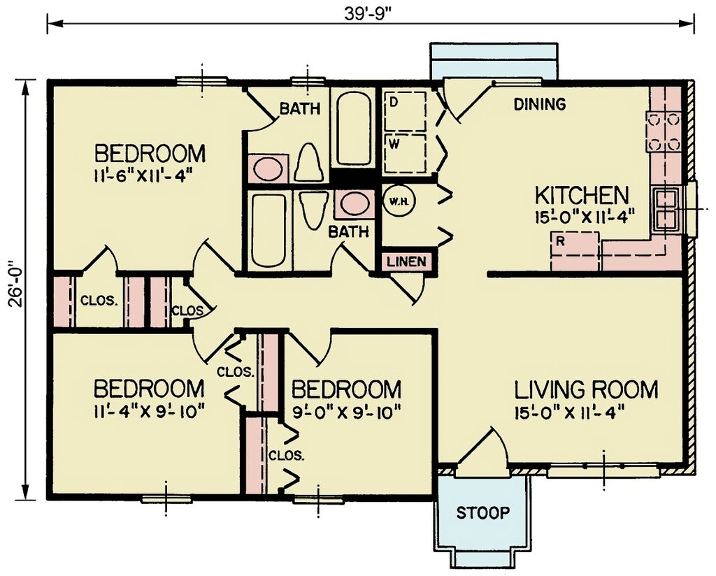 This 1,009 sq ft brick-clad home delivers efficient living in a timeless, compact design. The classic exterior features a modest 23 sq ft front stoop that welcomes you into a warm and practical interior layout. With three bedrooms arranged in a smart cluster, this plan is ideal for families, downsizers, or first-time homeowners seeking functionality and comfort. The family/keeping room anchors the home, offering a cozy gathering space just steps from the kitchen and dining areas.