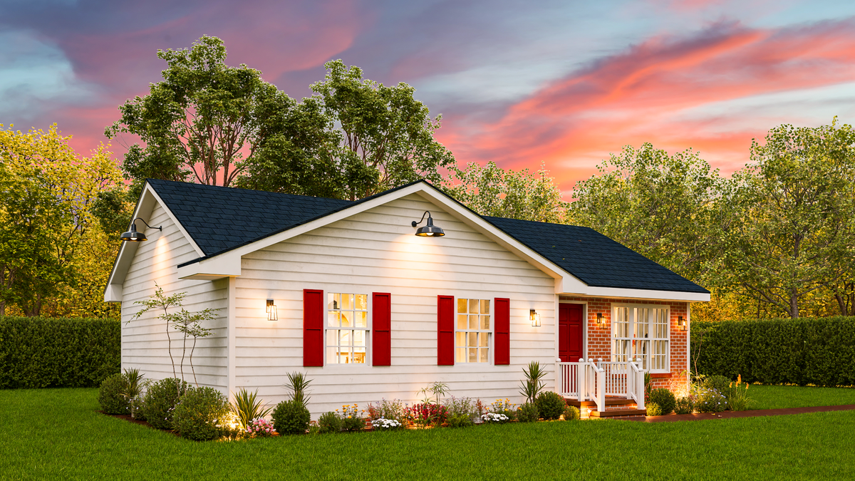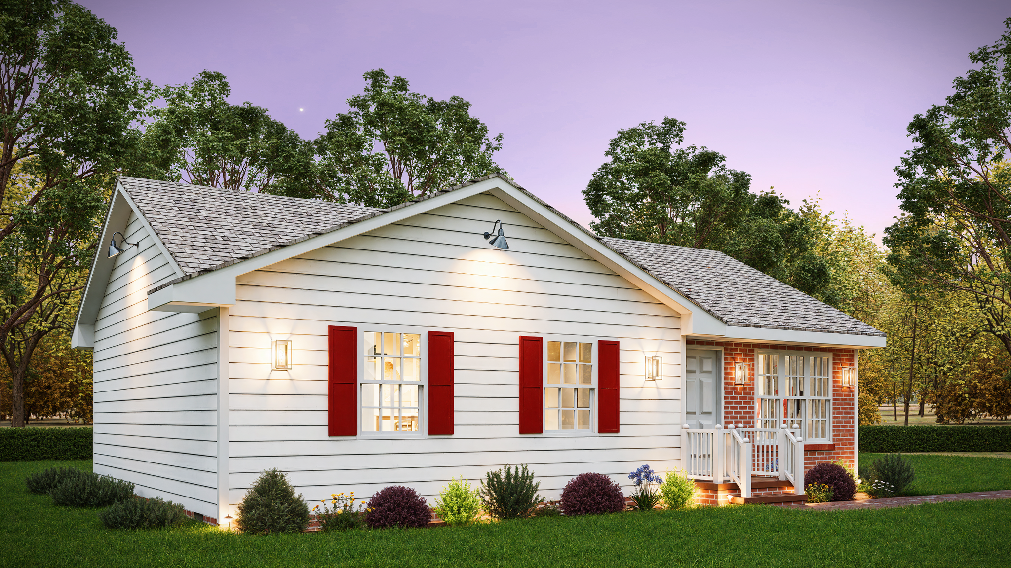 The first-floor master suite is tucked away for privacy and includes a walk-in closet and private bath, creating a restful retreat. Two additional bedrooms share a full bathroom and are ideal for kids, guests, or a home office. With 2x4 framing, stick-built roof construction, and a traditional 6:12 pitch, this home blends affordability with structural integrity. At just over 1,000 square feet, this plan maximizes livability without sacrificing charm or convenience.