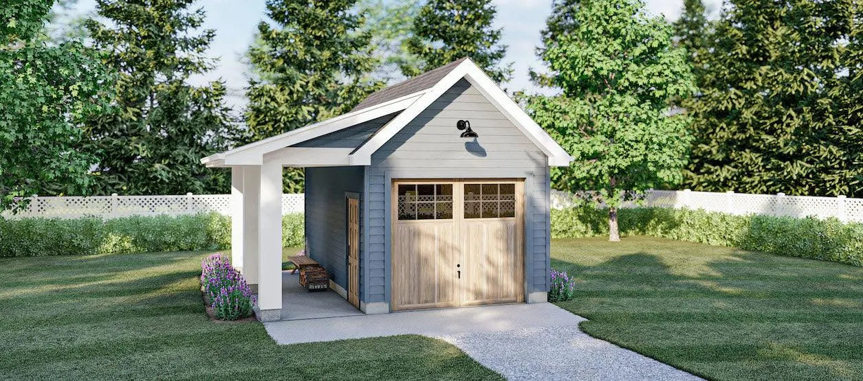 Constructed on a slab foundation, this garage features sturdy 2x4 wall framing and a ceiling height of 9 feet, allowing for vertical storage options. Whether you need space for tools, outdoor gear, or seasonal items, this garage plan meets your needs with a practical layout that maximizes every inch of space. Ideal for homeowners seeking a streamlined solution for their parking and storage requirements.