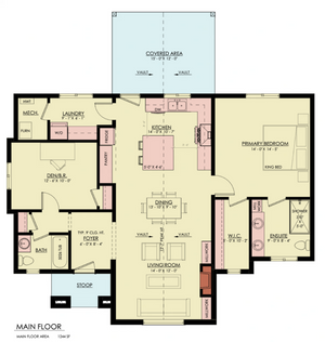 This inviting 1,244 sq ft home offers a well-designed one-story layout, perfect for comfortable living. The open-concept great room serves as the heart of the home, creating a bright and welcoming space for gathering. The master suite features a private bath and ample closet space, while the split-bedroom layout ensures privacy for the second bedroom. A first-floor laundry room adds convenience, and the covered front porch provides a charming entrance.