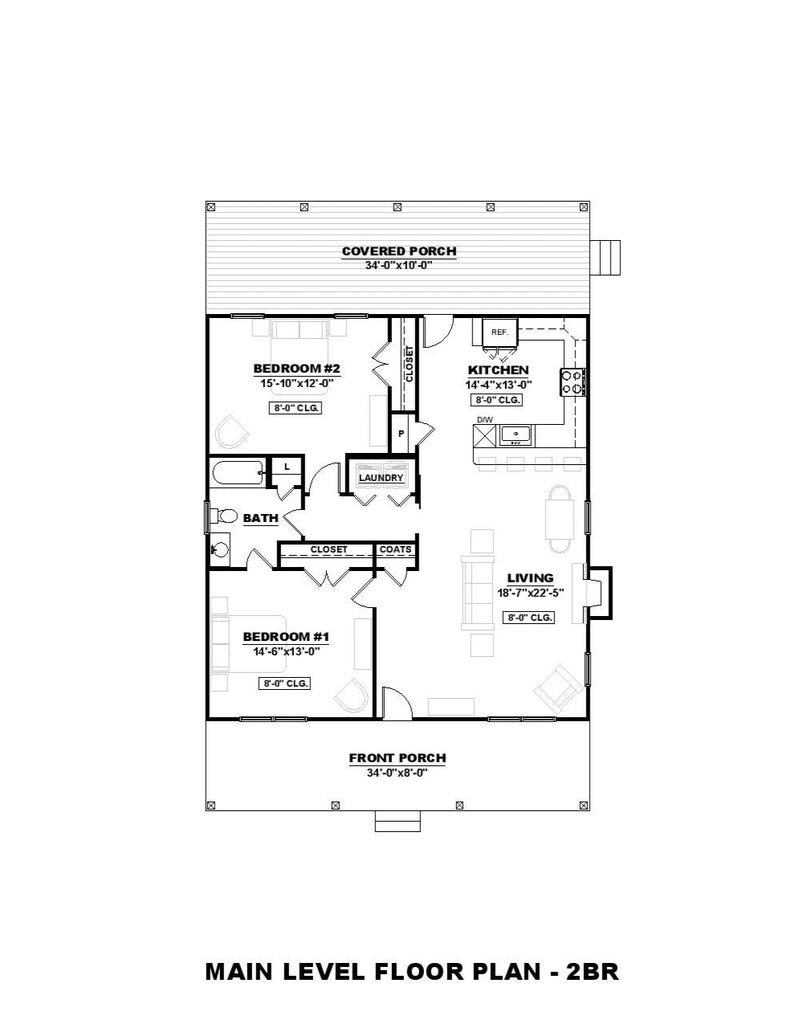 At the rear, a generous 340 sq ft covered porch offers the perfect outdoor retreat for relaxing or entertaining. The thoughtful layout includes a second bedroom ideal for guests, children, or a home office. With 2x4 wall framing, a crawl space foundation, and classic 8:12 and 4:12 roof pitches, this home blends traditional style with practical function — making it a great choice for narrow lots, retirement living, or weekend getaways.